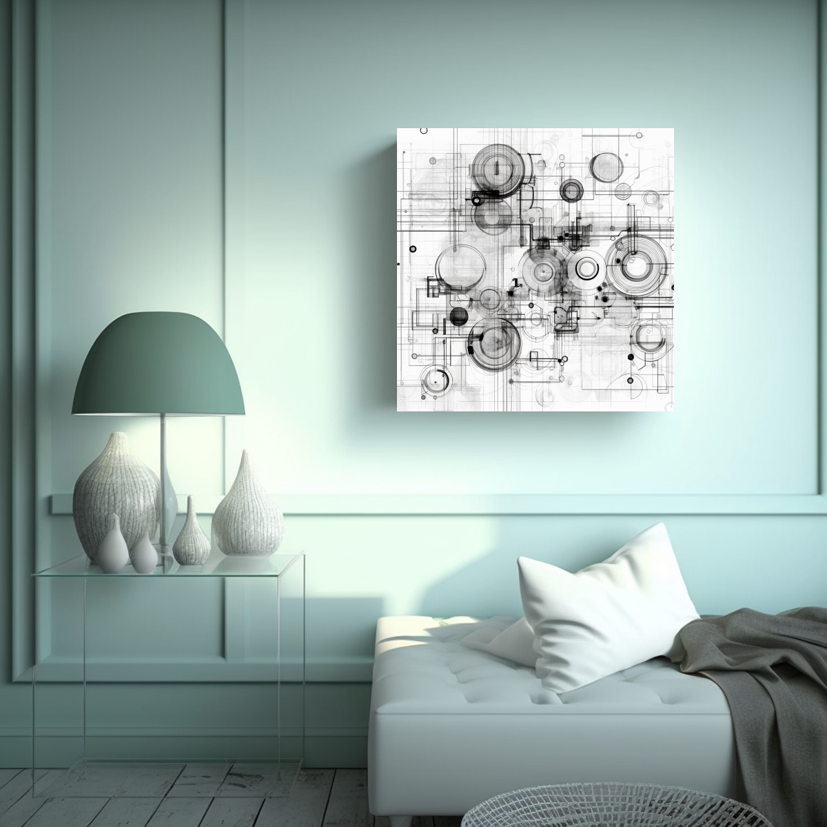 Este cuadro es ideal para decorar un espacio minimalista y contemporáneo Combínalo con muebles en tonos neutros como el blanco, el gris y el beige, y agrega algunos detalles en tonos plateados para resaltar su diseño Colócalo en la sala de estar, el dormitorio o el estudio para lograr un ambiente elegante y sofisticado