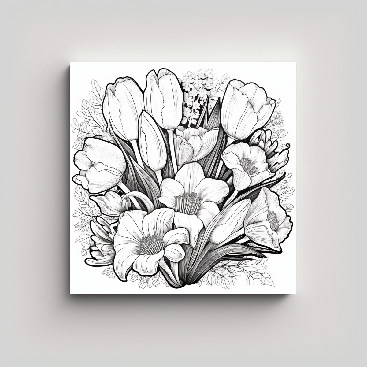 Lienzo Creativo De Tulipanes En Armonía Cromática – Dibujo Lineal