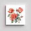 Lienzo Cuadrado De Rosas Rojas Elegantes En Acuarela Realista Y Tinta