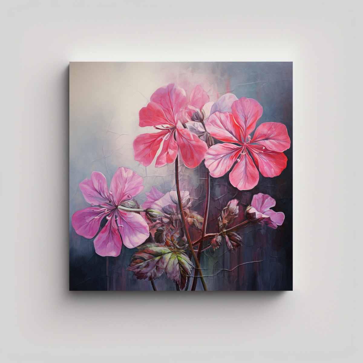Lienzo Cuadrado Mágico Con Flores Geranio Pintura Abstracta En Estilo Óleo Detallada