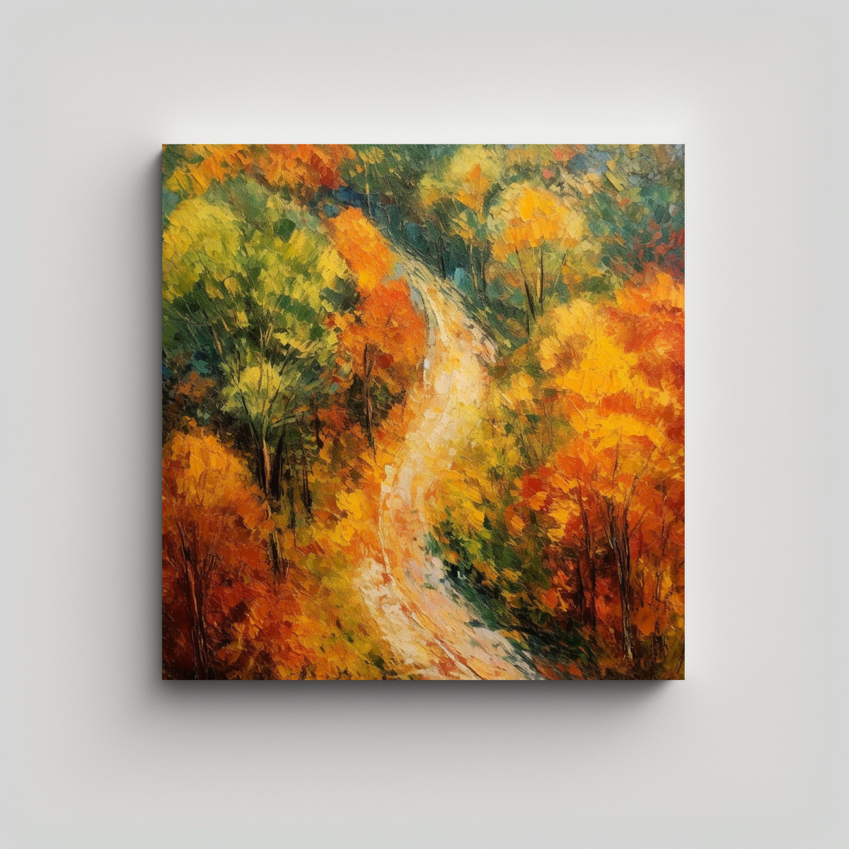 Coloca este cuadro en el salón principal de tu hogar para crear un ambiente cálido y acogedor Combínalo con muebles de madera clara y detalles en tonos tierra para resaltar la belleza de los colores otoñales ¡Transforma tu espacio con este paisaje encantador!