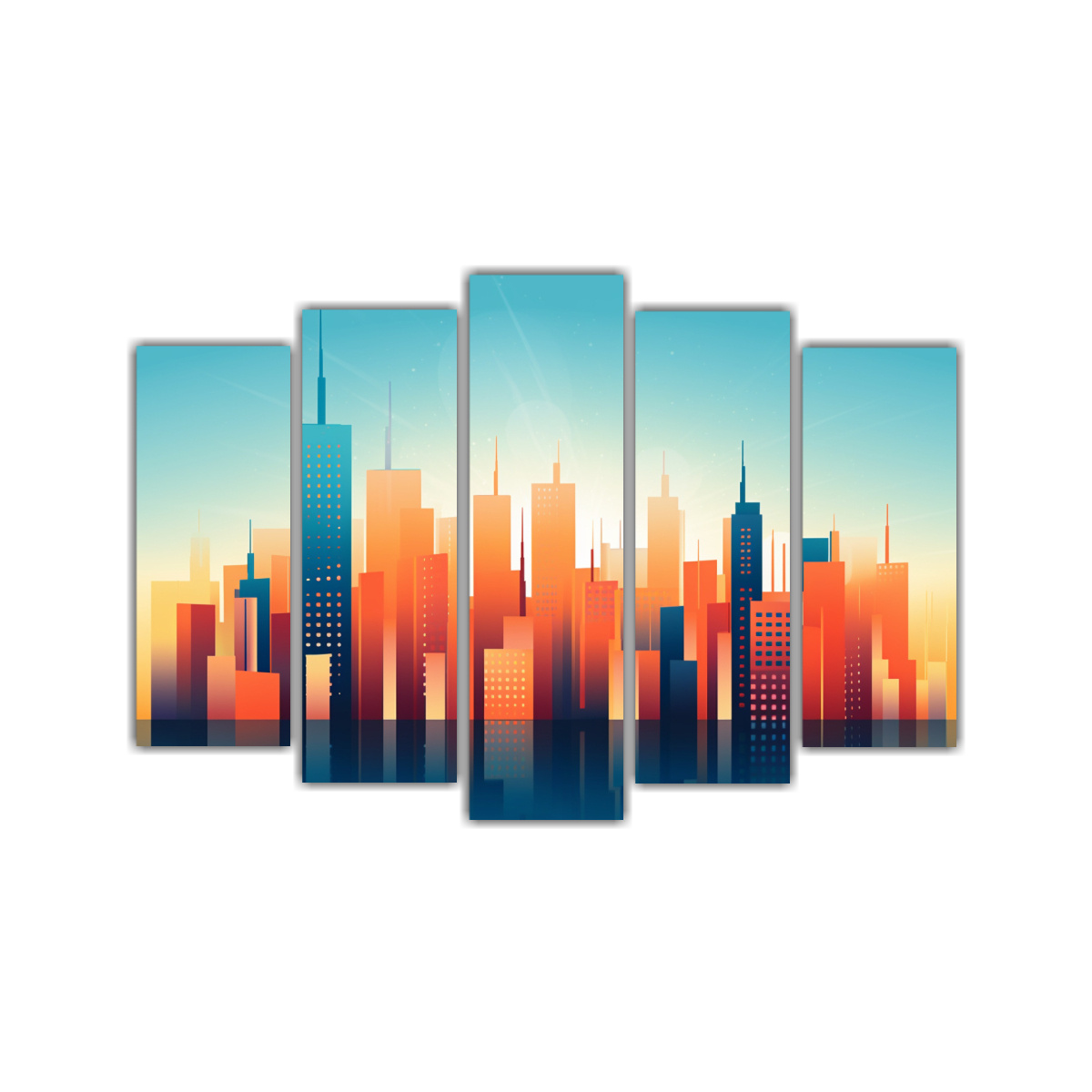 Este cuadro urbano minimalista en 5 telas quedaría perfecto en el salón de tu hogar, creando un ambiente moderno y sofisticado Combínalo con muebles de líneas simples y colores neutros para resaltar su belleza
