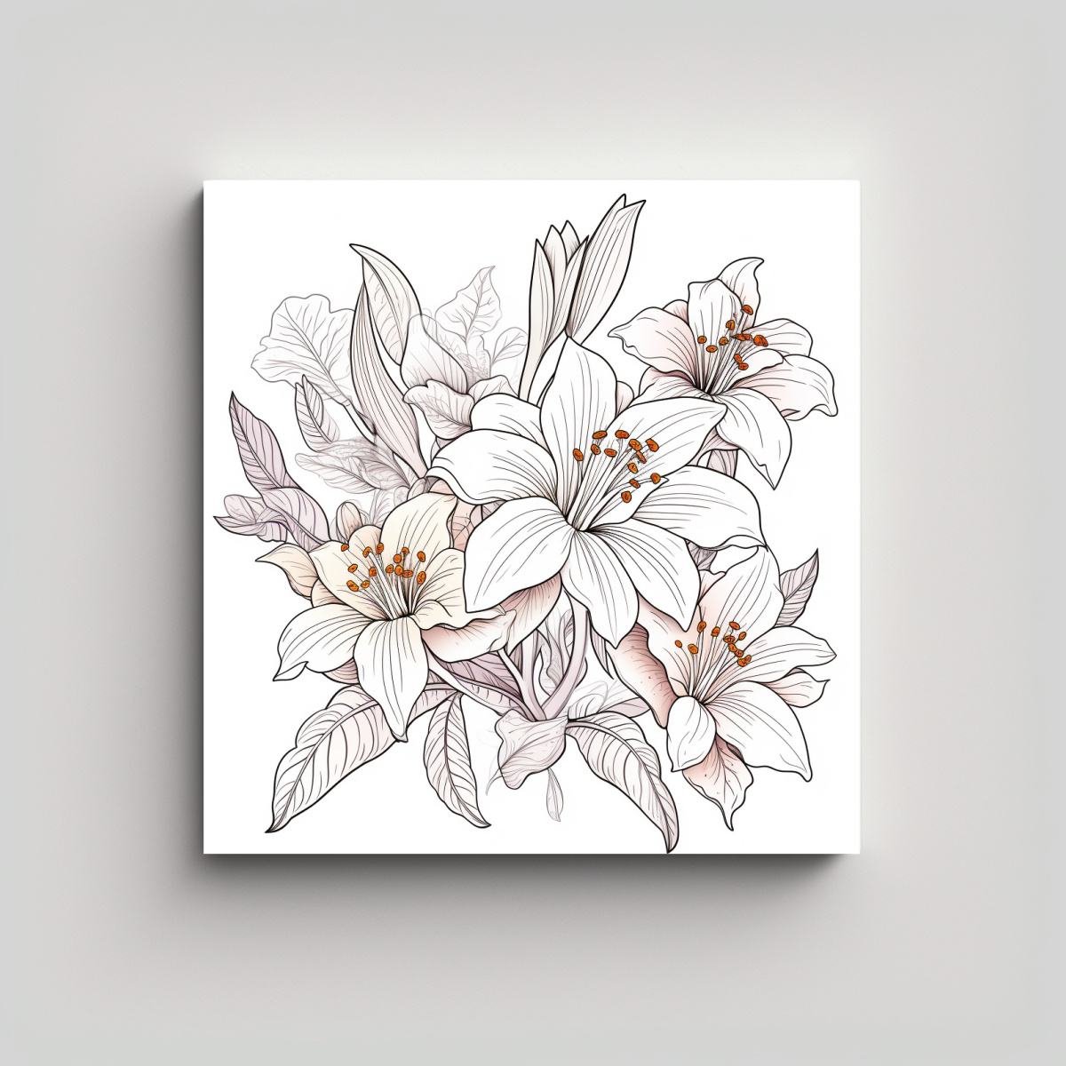 Lienzo De Alta Calidad Con Dibujo Vectorial De Flores En Líneas Rectas