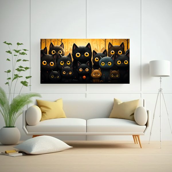 Lienzo De Cuadro Surrealista Con Gatos Negros En Suéter