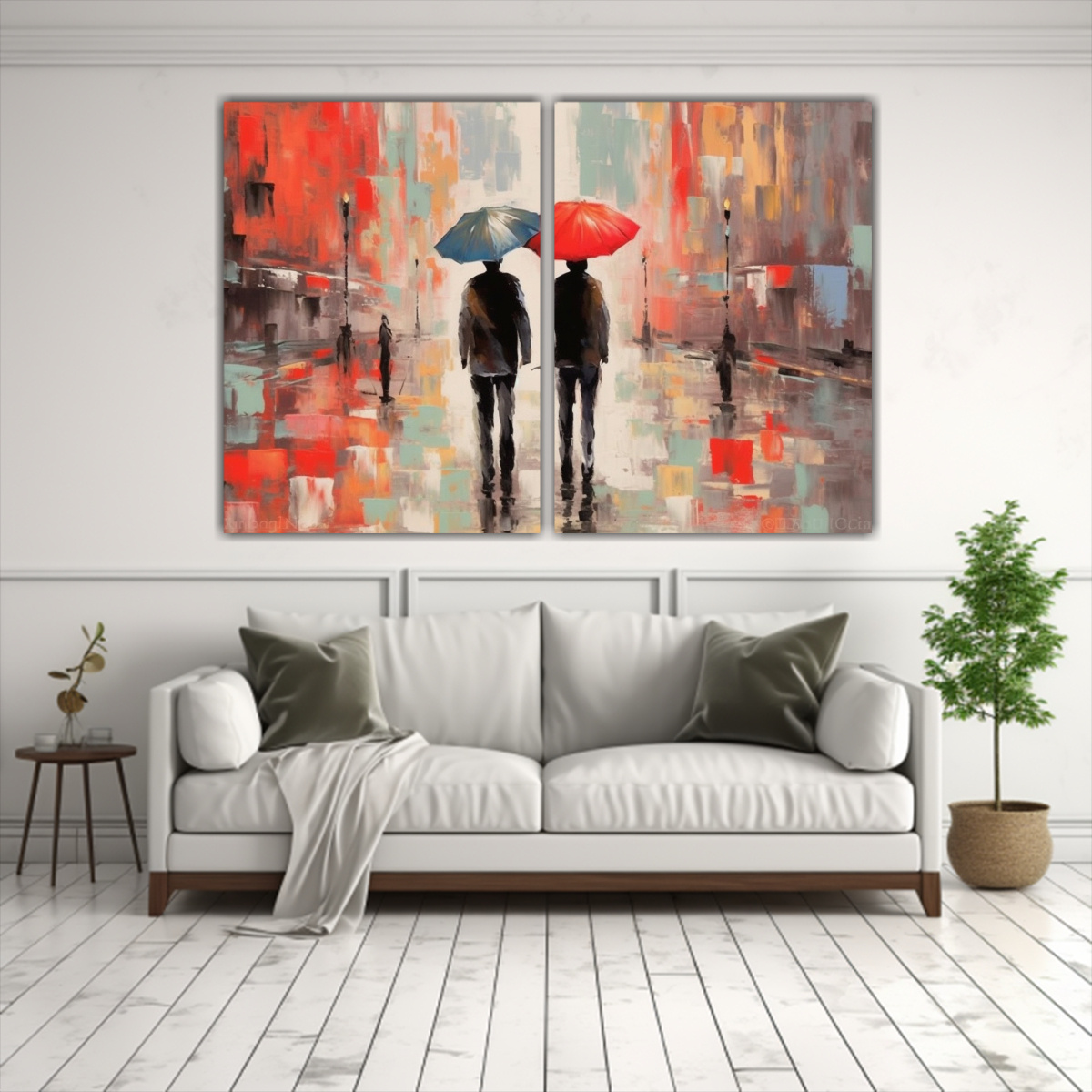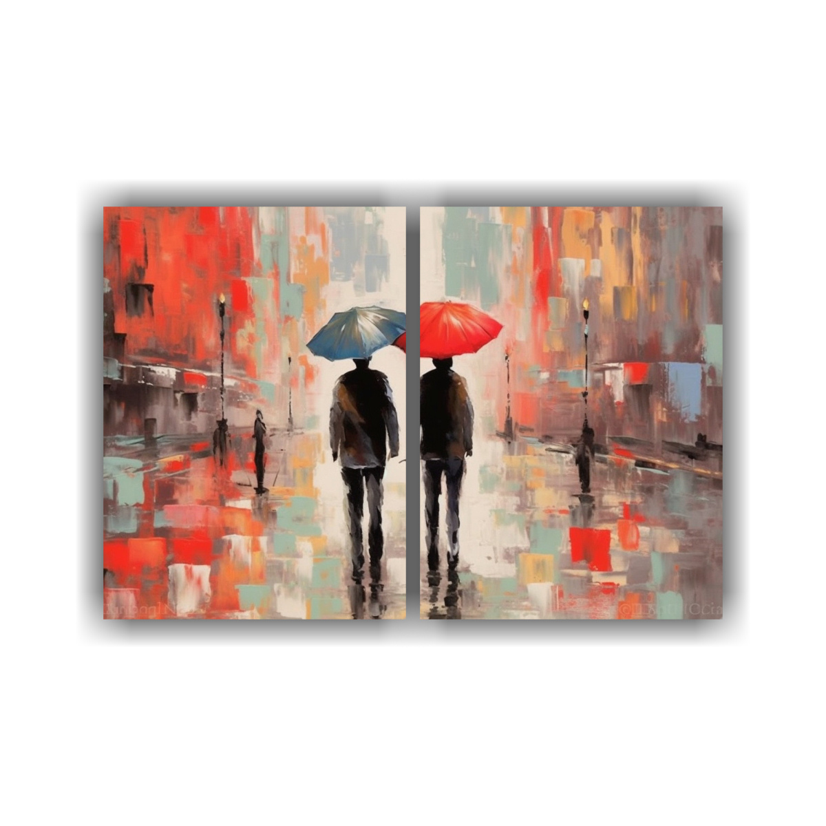 Este cuadro con hombres y paraguas coloridos en tonos rosas es ideal para decorar tu sala de estar o tu estudio Combínalo con muebles en tonos neutros para resaltar su belleza y darle un toque de elegancia a tu espacio