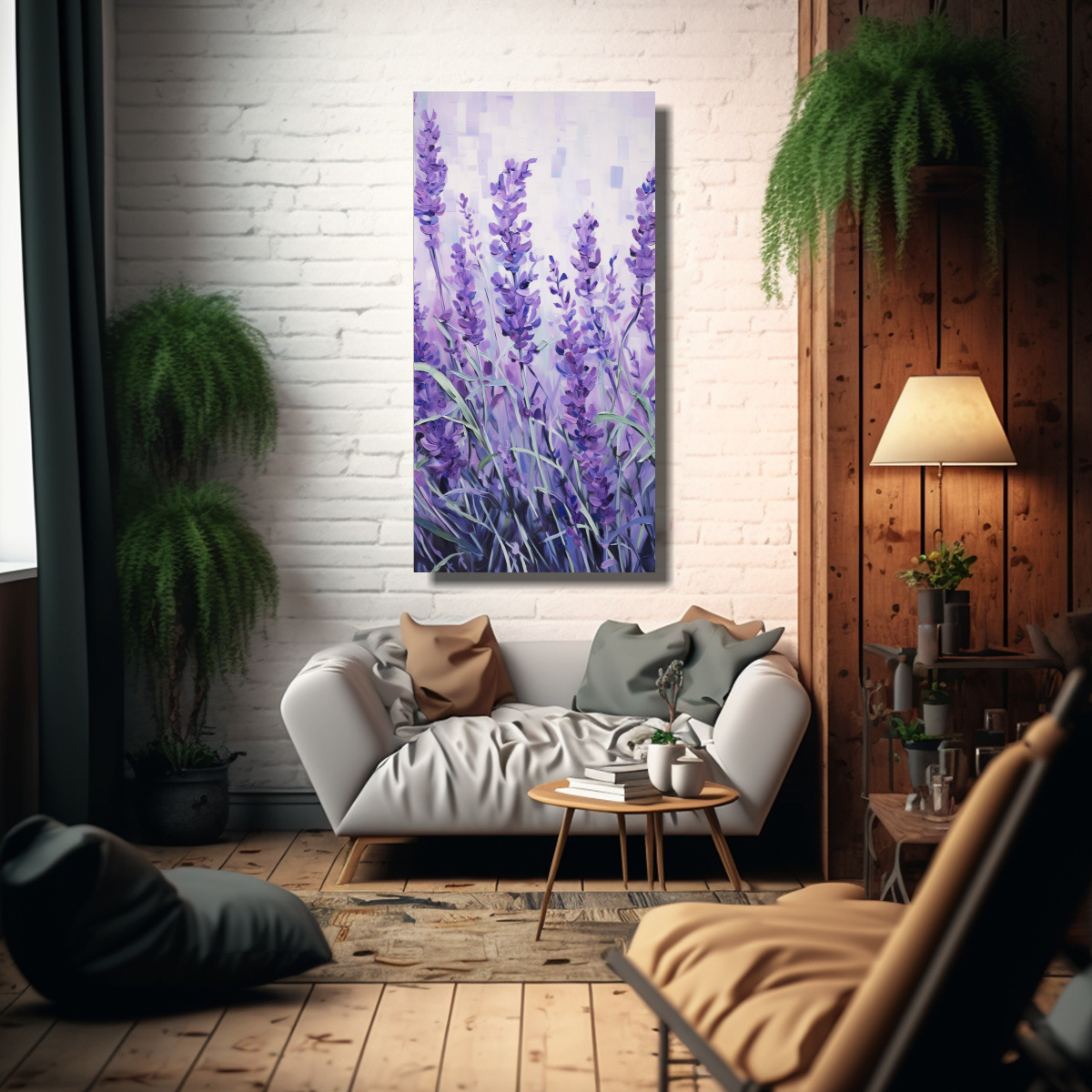Este cuadro abstracto de hierbas en tonos lavanda sería ideal para decorar una sala de estar o un dormitorio moderno Combínalo con muebles en tonos grises y lilas para crear una atmósfera relajante y elegante