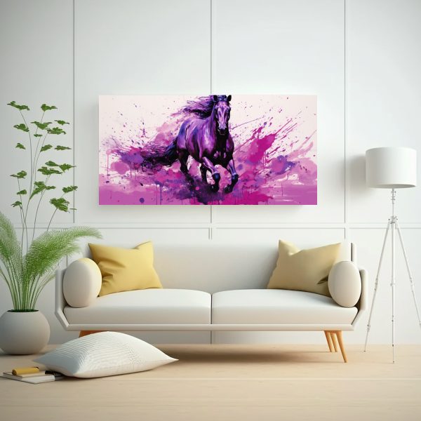 Lienzo De Tela: Caballo Purpura Estilo Neo Pop Art En Profundidad.