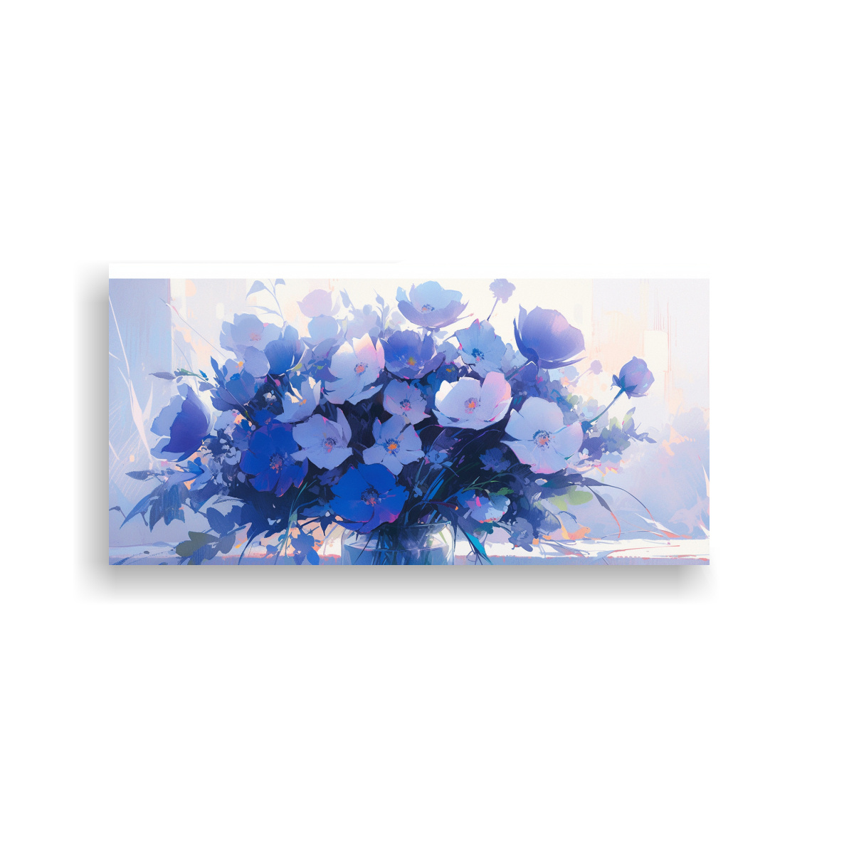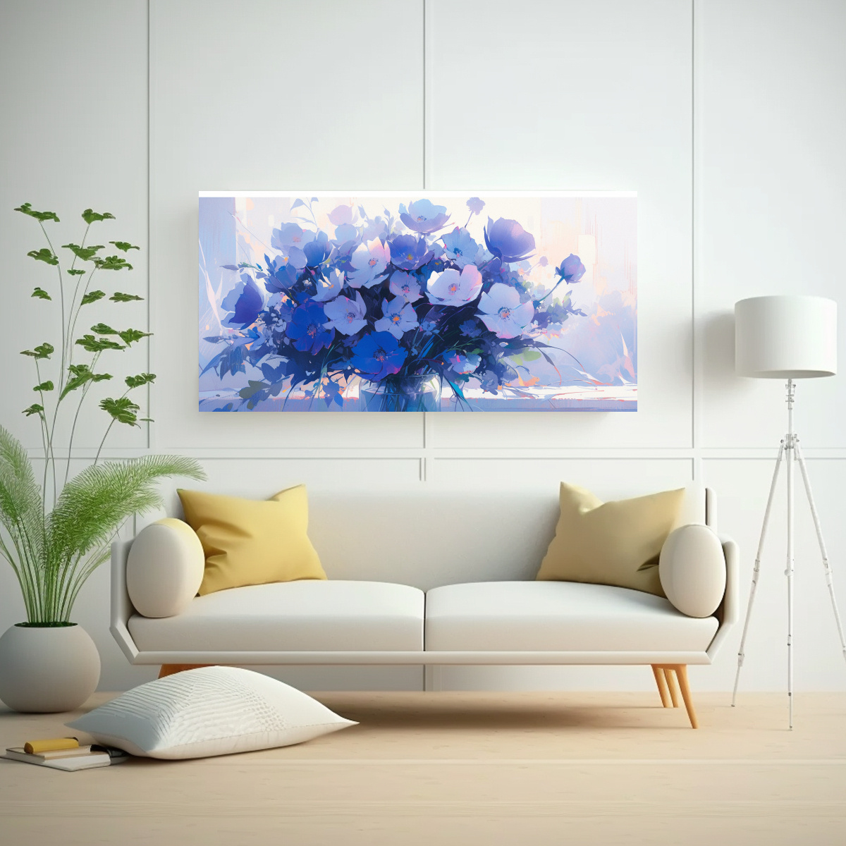 Lienzo De Tela Con Colores Vibrantes Pintura De Flores Púrpuras Y Azules