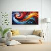 Este lienzo con remolinos de colores vibrantes es perfecto para destacar en una pared blanca o neutra Colócalo en el centro para crear un punto focal llamativo o combínalo con otros cuadros de tonos suaves para lograr un contraste sofisticado ¡Dale vida a tu hogar con este cuadro único y moderno!