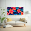 Lienzo De Tela Con Figuras Cálidas De Flores Tropicales Y Patrón Sin Costuras De Hibisco
