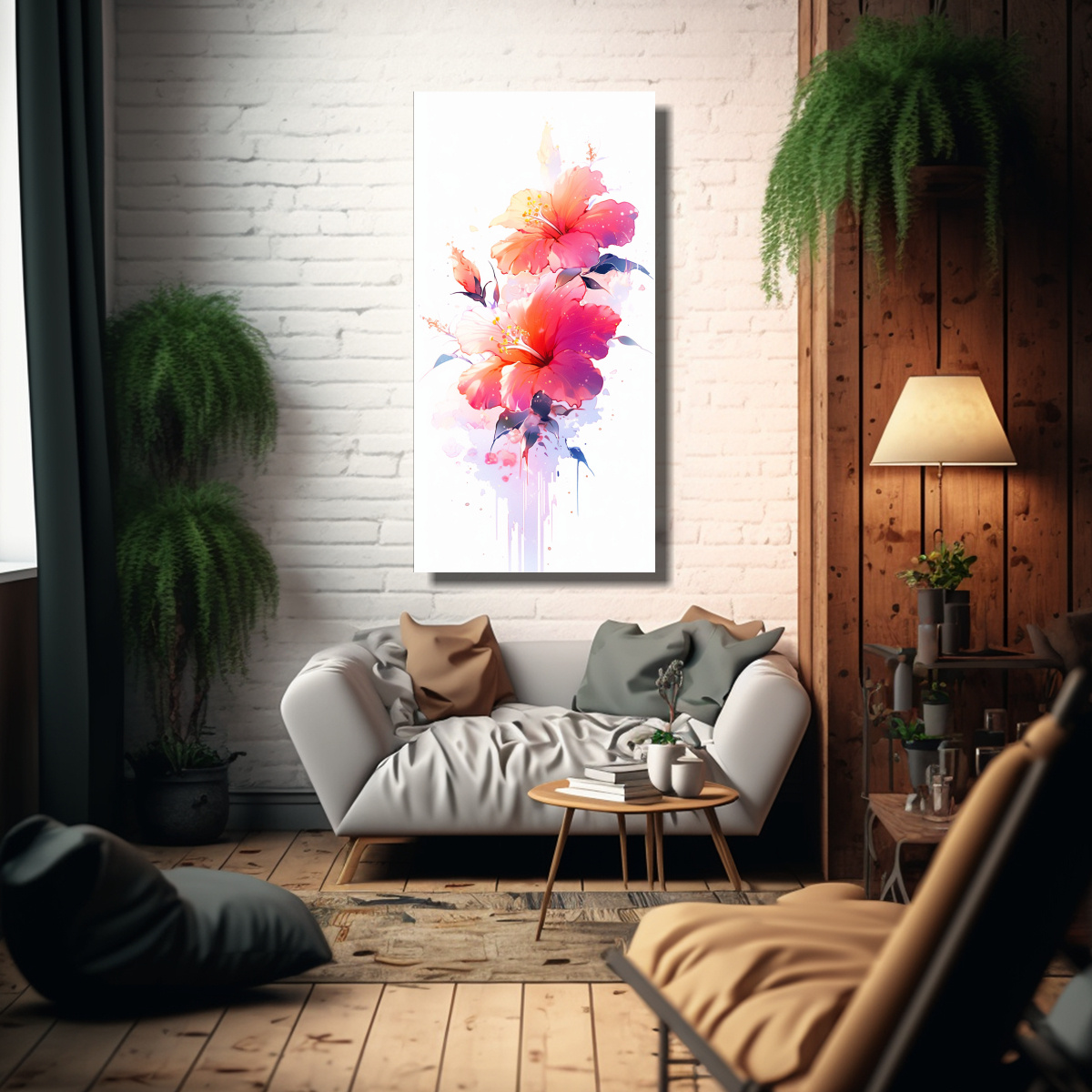 Este cuadro abstracto de hibiscus en acuarela se verá espectacular en tu sala de estar Combínalo con muebles en tonos neutros como beige y gris, y agrega cojines en tonos rosados y lila para lograr una armonía perfecta