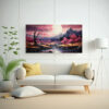 DecoCuadros presenta un cuadro decorativo de vanguardia con una poderosa imagen de montañas y luna, impreso en tela de alta calidad con bastidor de madera Sus tonos lila, azul marino grisaceo, dorado, plateado, gris, coral y carmesí aportan sofisticación y elegancia a cualquier espacio Nuestra tienda online ofrece diseños exclusivos, calidad de primera y los precios más bajos del mercado Además, garantizamos las entregas más rápidas y gratuitas en Santiago, así como envíos express a regiones Aprovecha esta oportunidad para transformar tu hogar u oficina con esta obra de arte única