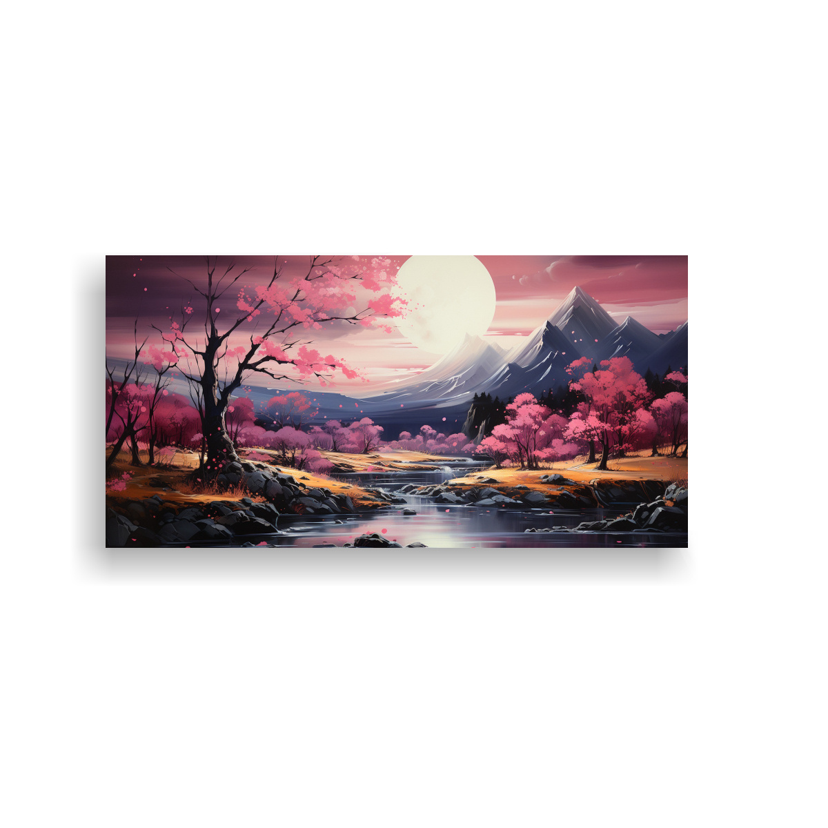 Lienzo De Tela Con Poderosa Vanguardia: Montañas Y Luna