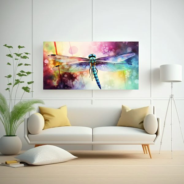 Añade un toque de color y sofisticación a tu hogar con este cuadro en tela de alta calidad La elegante libélula colorida en estilo acuarela se destaca en una paleta de colores vibrantes que complementarán cualquier decoración Envío rápido y gratuito en Santiago, ¡no esperes más para darle vida a tus paredes!