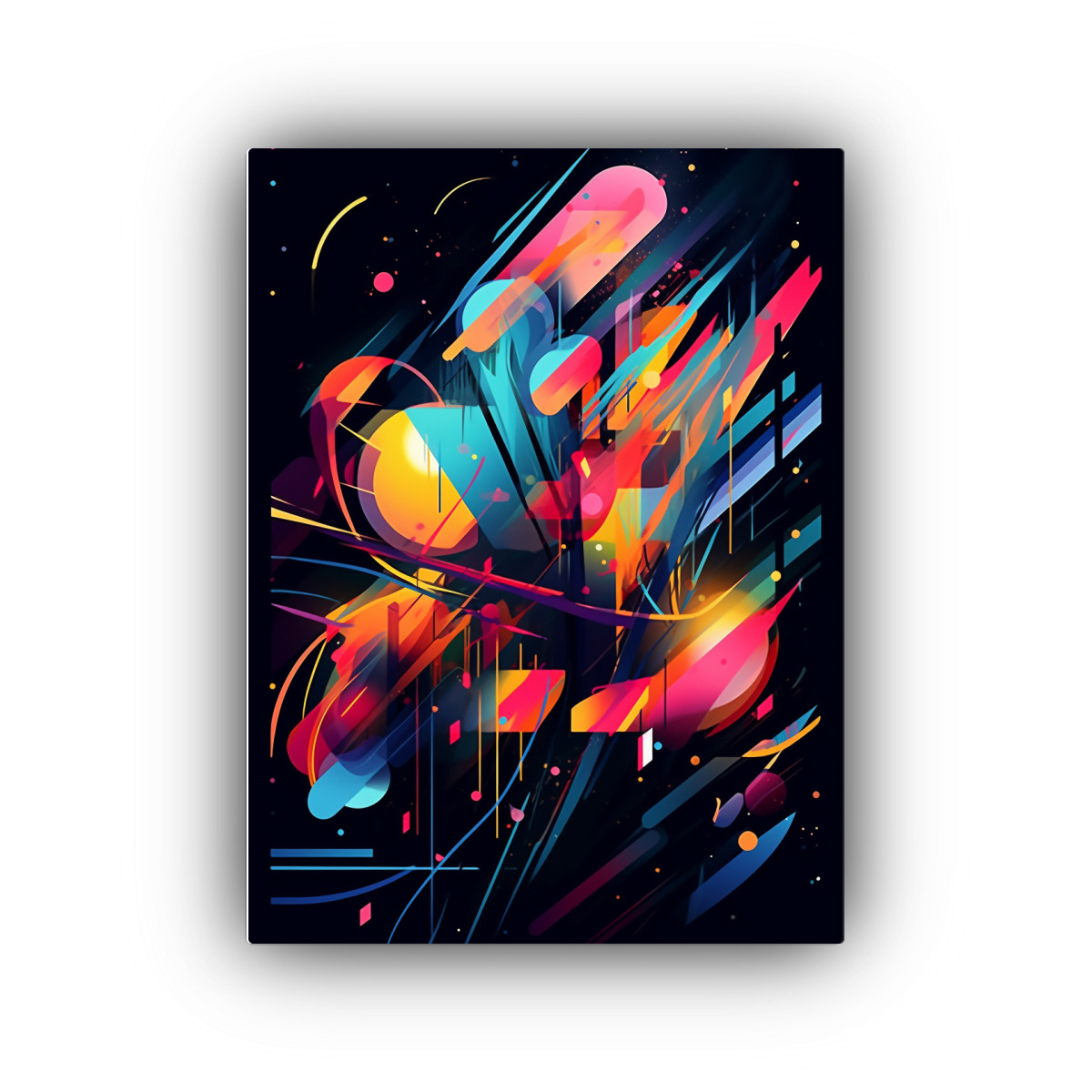 DecoCuadros te ofrece este hermoso lienzo de tela mural abstracto en colores neón Con tonalidades vibrantes como coral, turquesa, negro, amarillo claro, azul marino grisáceo, verde azulado y lila, este cuadro agregará un toque moderno y llamativo a cualquier espacio