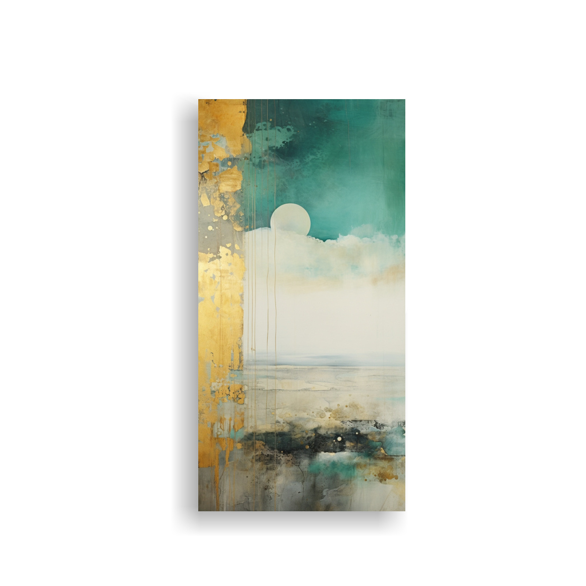 Lienzo De Tela Impreso Adorno Con Acuarela Turquesa, Teal Y Dorado.