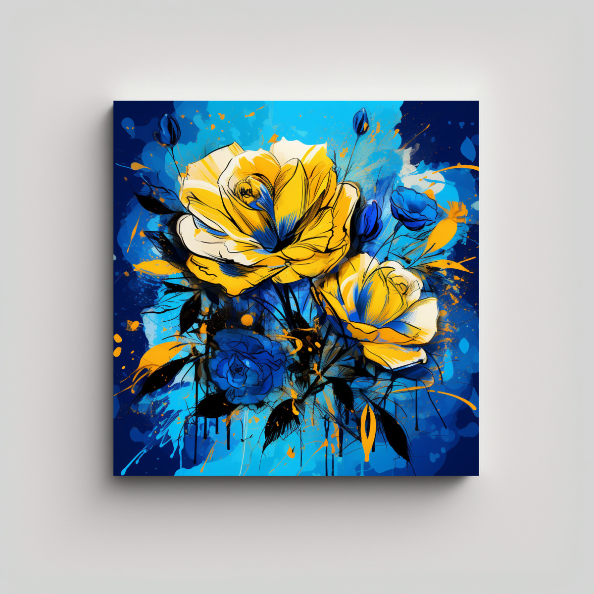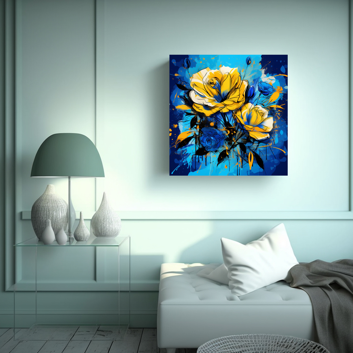 Este cuadro de arte urbano amarillo y azul es perfecto para decorar tu sala de estar o estudio Combínalo con muebles en tonos neutros como beige o gris para crear un ambiente moderno y elegante