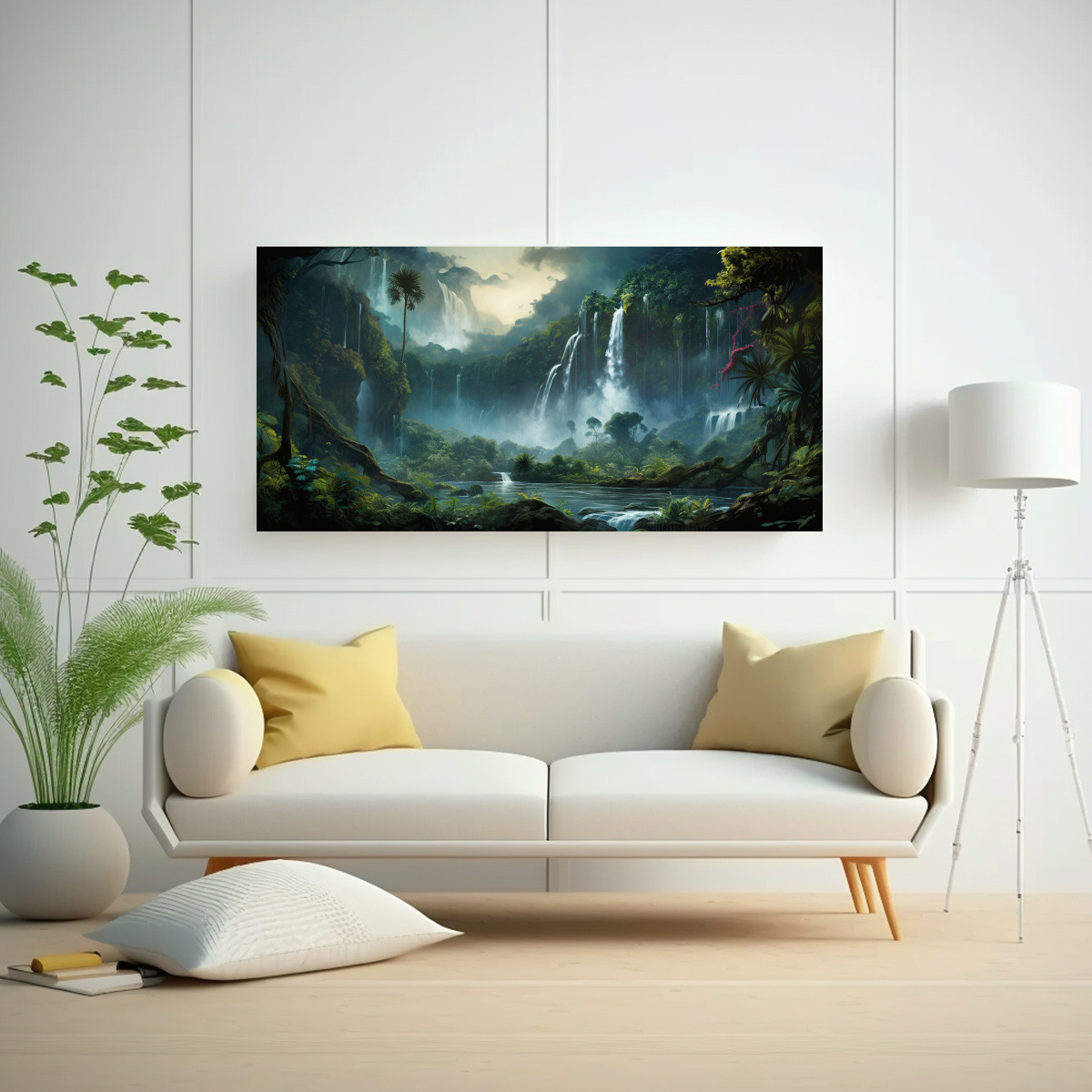 Para realzar la belleza del cuadro ‘Cascadas en un paraíso amazónico oculto’, te recomendamos colocarlo en el salón principal de tu hogar Crea un ambiente relajado y acogedor al combinarlo con muebles de tonos neutros, como grises o beige Además, puedes añadir plantas de interior para resaltar la temática natural del cuadro ¡Verás cómo este cuadro se convierte en el punto focal de tu sala y brinda una sensación de paz y armonía a tu espacio!