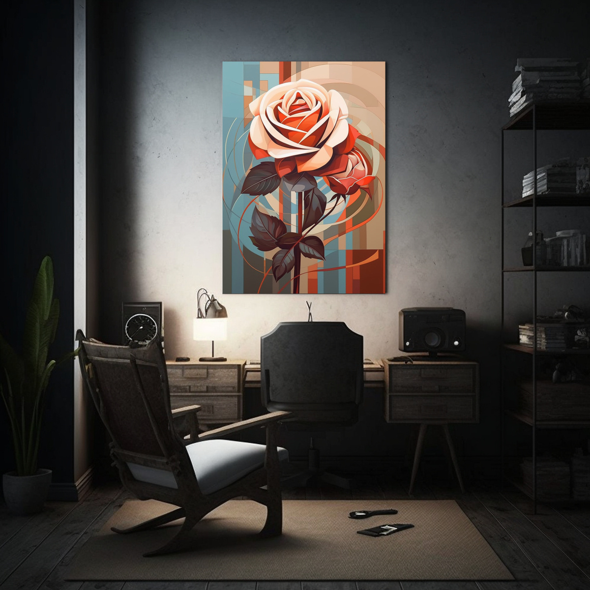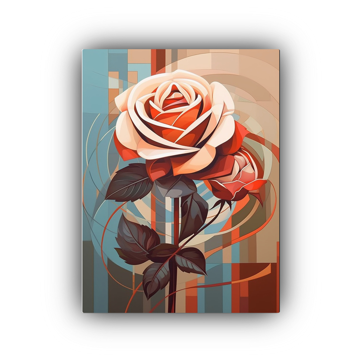 Lienzo De Tela: Rosa Roja Vibrante Con 3 Pétalos Delicados, ángulo Superior Moderno Urbano