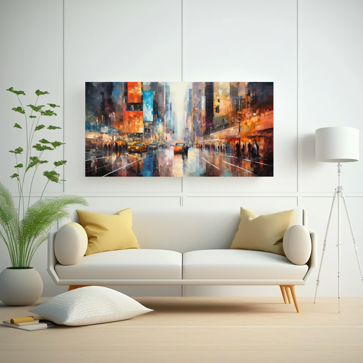 Lienzo De Tela Tema Expresividad: Ritmo Abstracto De Una Ciudad Bulliciosa En Hora Punta
