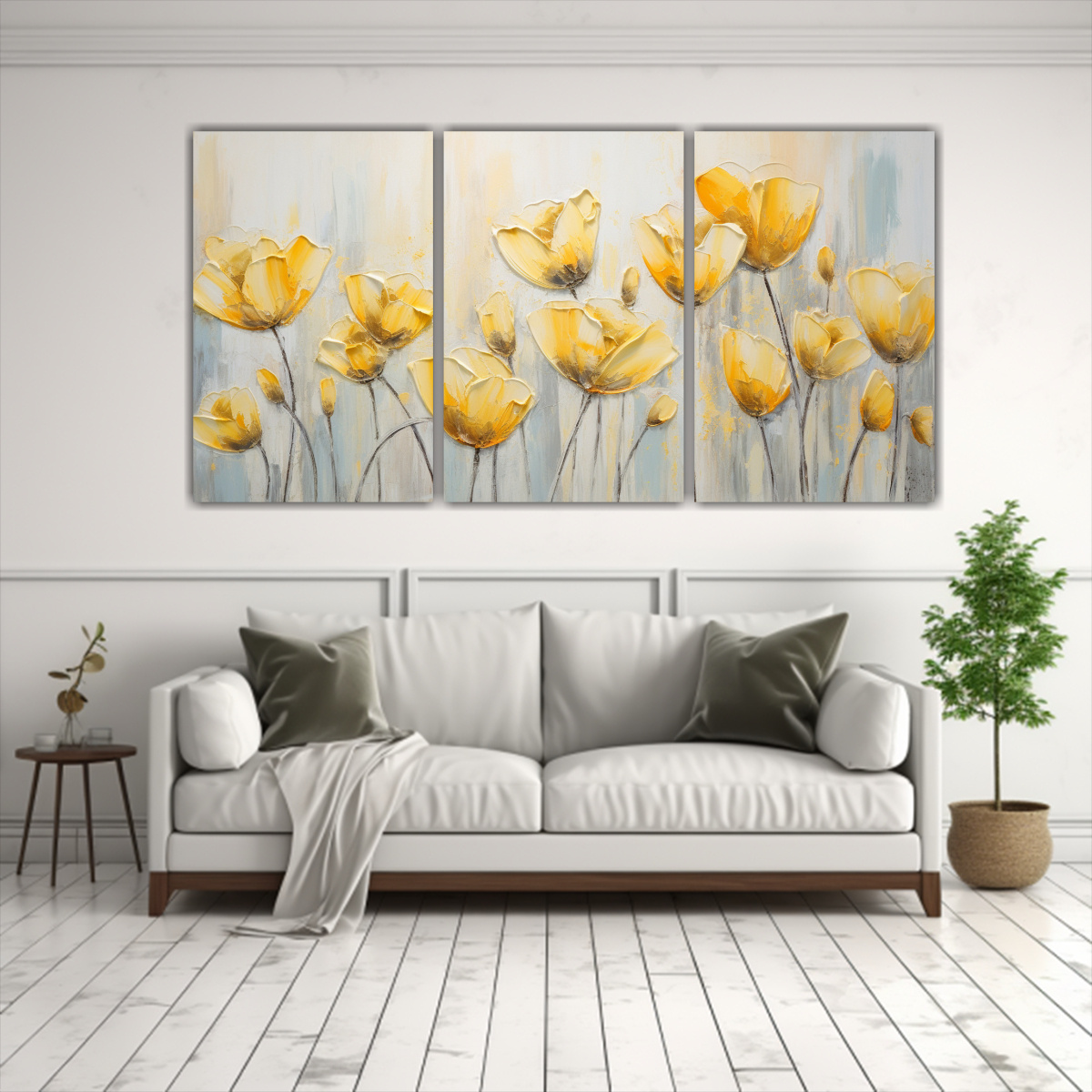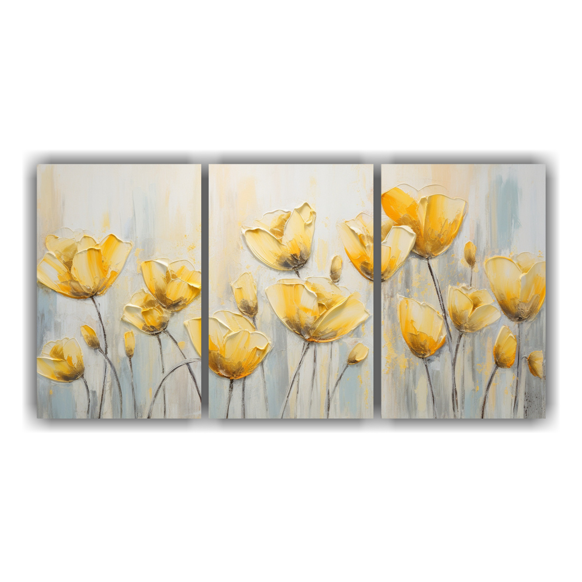 Lienzo De Tela Temática Amarillo TULIPANES Decoración De Pintura En Estilo De Líneas Finas