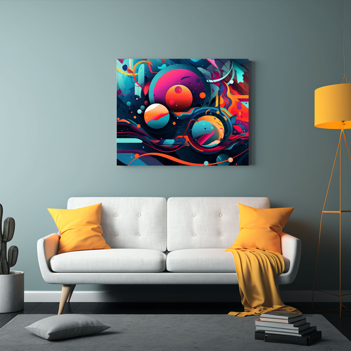 Coloca este lienzo decorativo abstracto futurista en tu sala de estar para crear un ambiente vanguardista y lleno de energía Combínalo con muebles modernos en tonos neutros para resaltar su belleza y lograr un espacio único y sofisticado