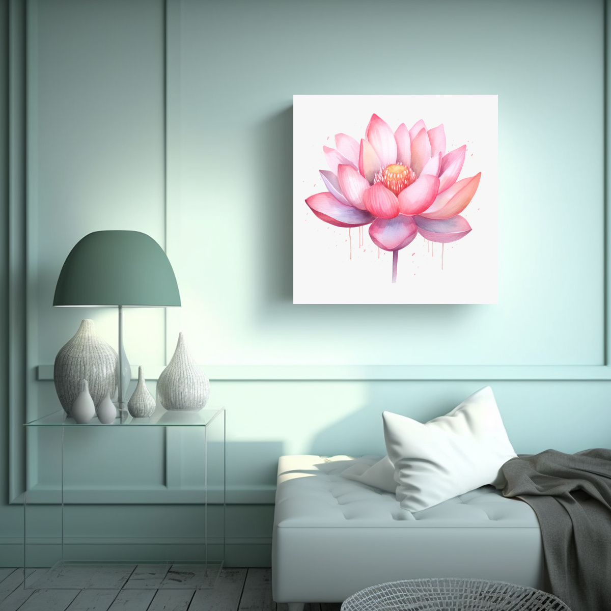 Lienzo Decorativo Estilo Acuarela: Flor De Loto Rosa 0569 Para Baño