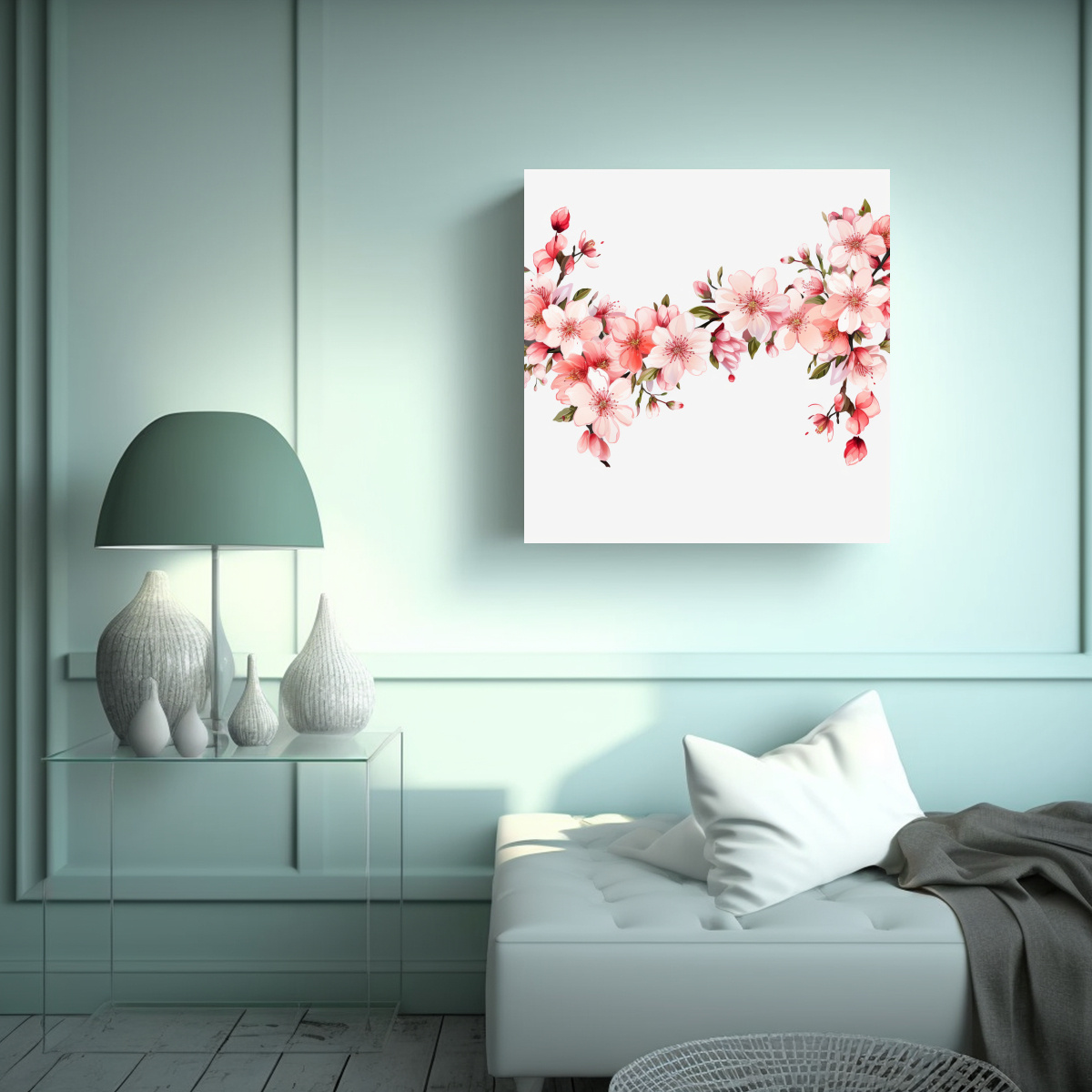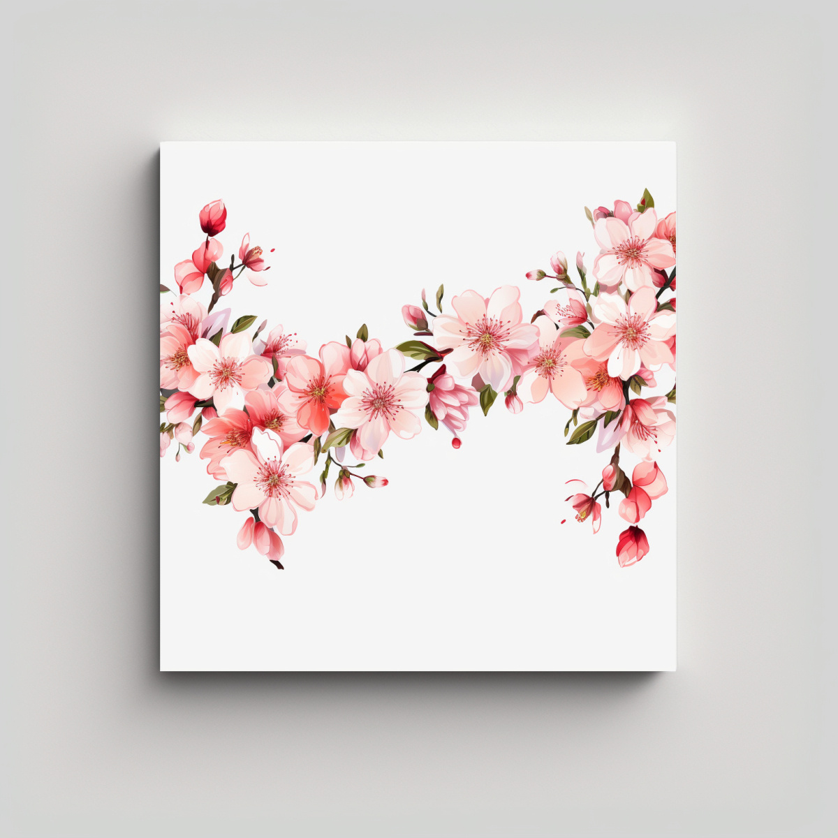 Lienzo Decorativo: Impacto Visual Con Flores De Cerezo Y Bordes Florales