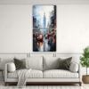 Este cuadro de relieve del paisaje de la calle Times Square de Manhattan es perfecto para decorar una sala de estar moderna Colócalo sobre un sofá de tonos neutros y complementa con cojines en colores vivos como el azul y el verde azulado Añade una alfombra gris y detalles plateados en las mesas auxiliares para lograr un contraste elegante