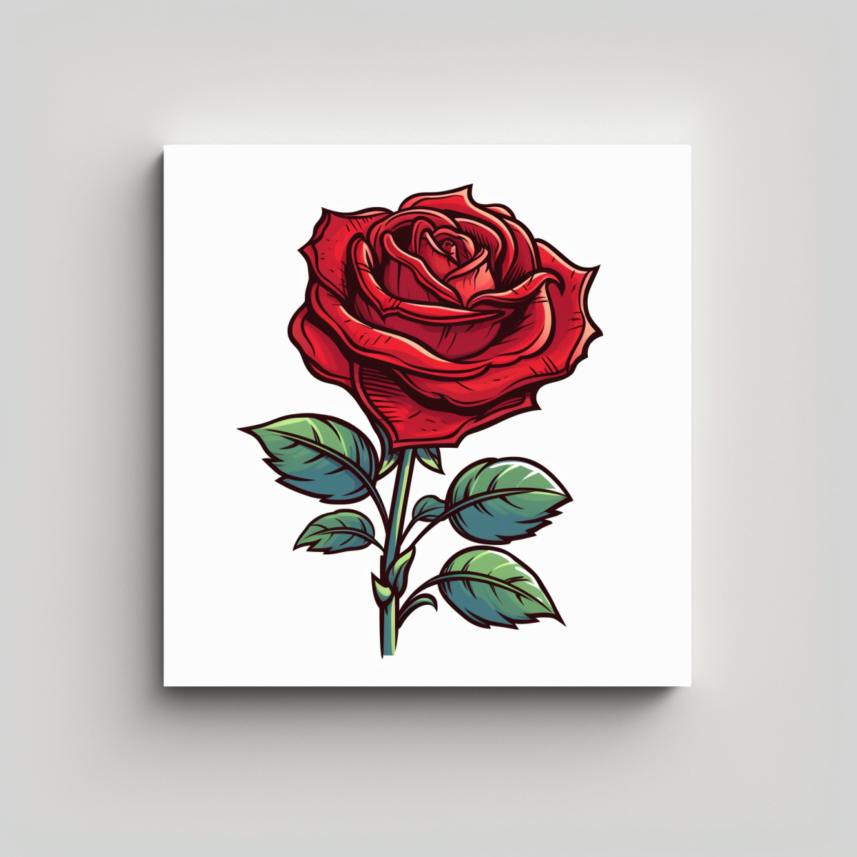 Lienzo Decorativo: Rosa Roja Cartoon En Fondo Blanco – Impacto Visual