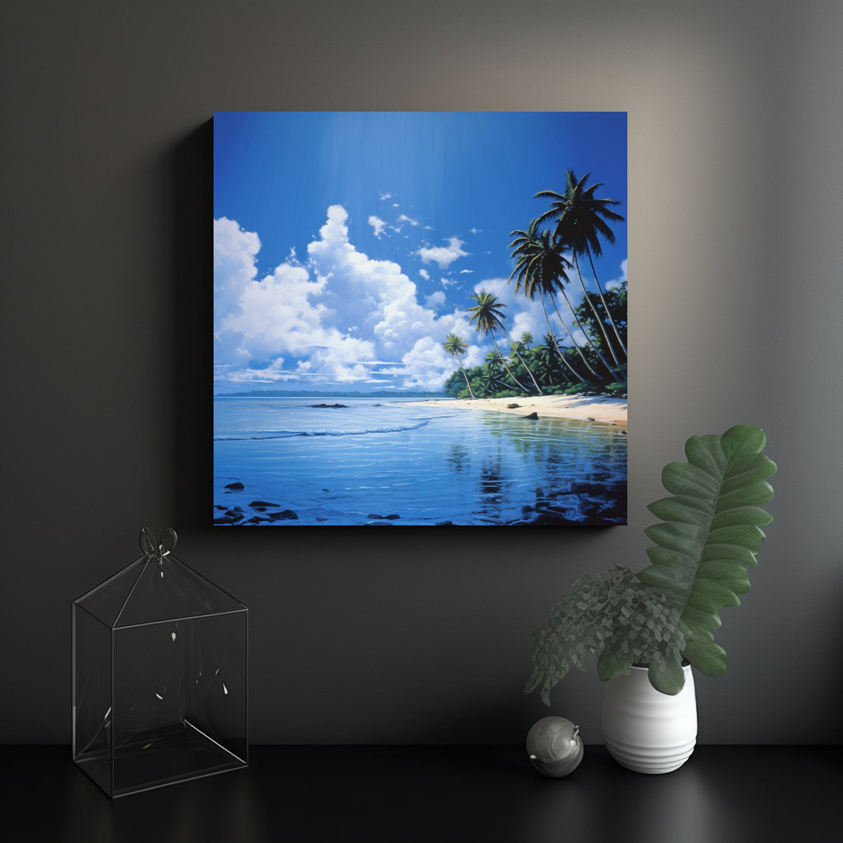 Lienzo Dibujo Armonía Colores Playa Coco Cielo Blanco NubesAzules
