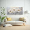 Este cuadro con girasoles blancos en estilo pintura es perfecto para decorar cualquier espacio en tu hogar u oficina Te recomendamos colocarlo en la sala de estar o en un pasillo para darle un toque de elegancia y frescura Combina muy bien con muebles de tonos neutros como beige o gris, y también con elementos dorados o plateados para crear un ambiente sofisticado