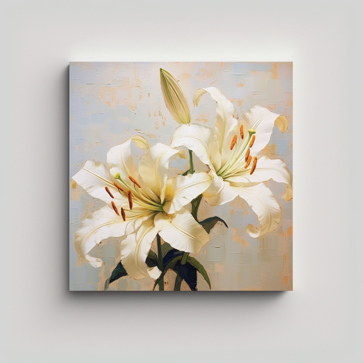 Lienzo Hermoso De Vida: Obra Expresionista En Óleo De Lirios Orientales Blancos