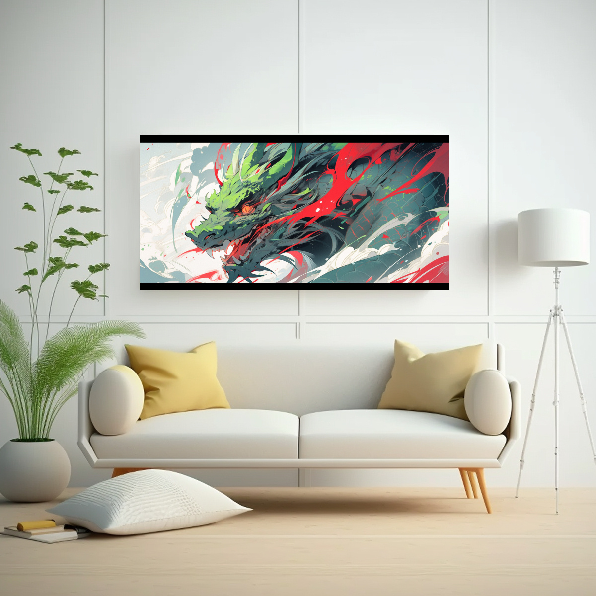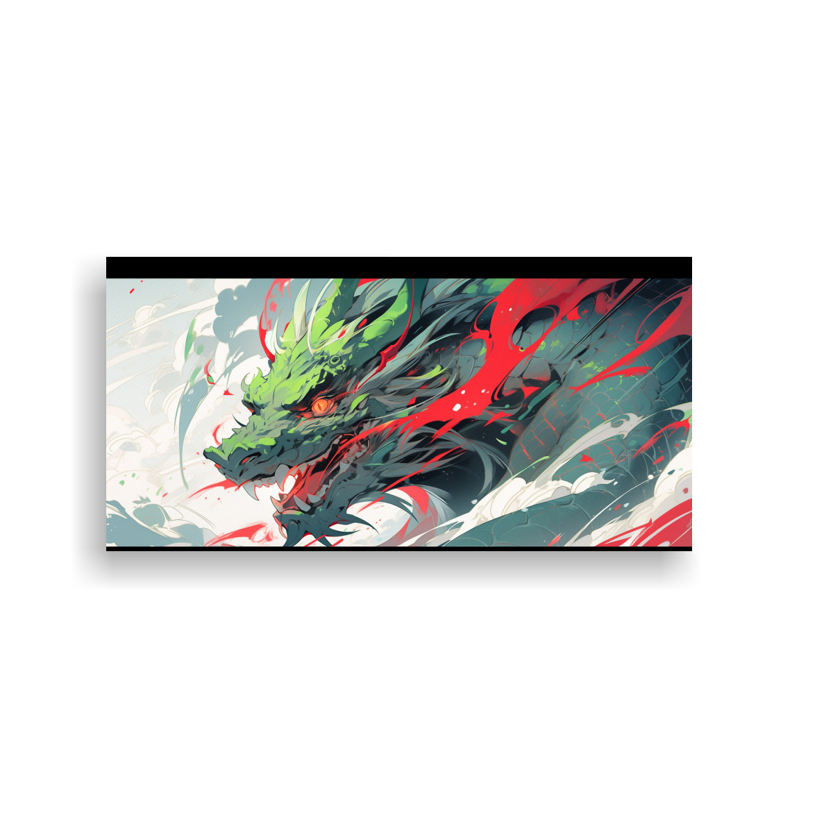 Lienzo Hermoso Dragón Verde Y Rojo Neonoir Decoración Pinturas.