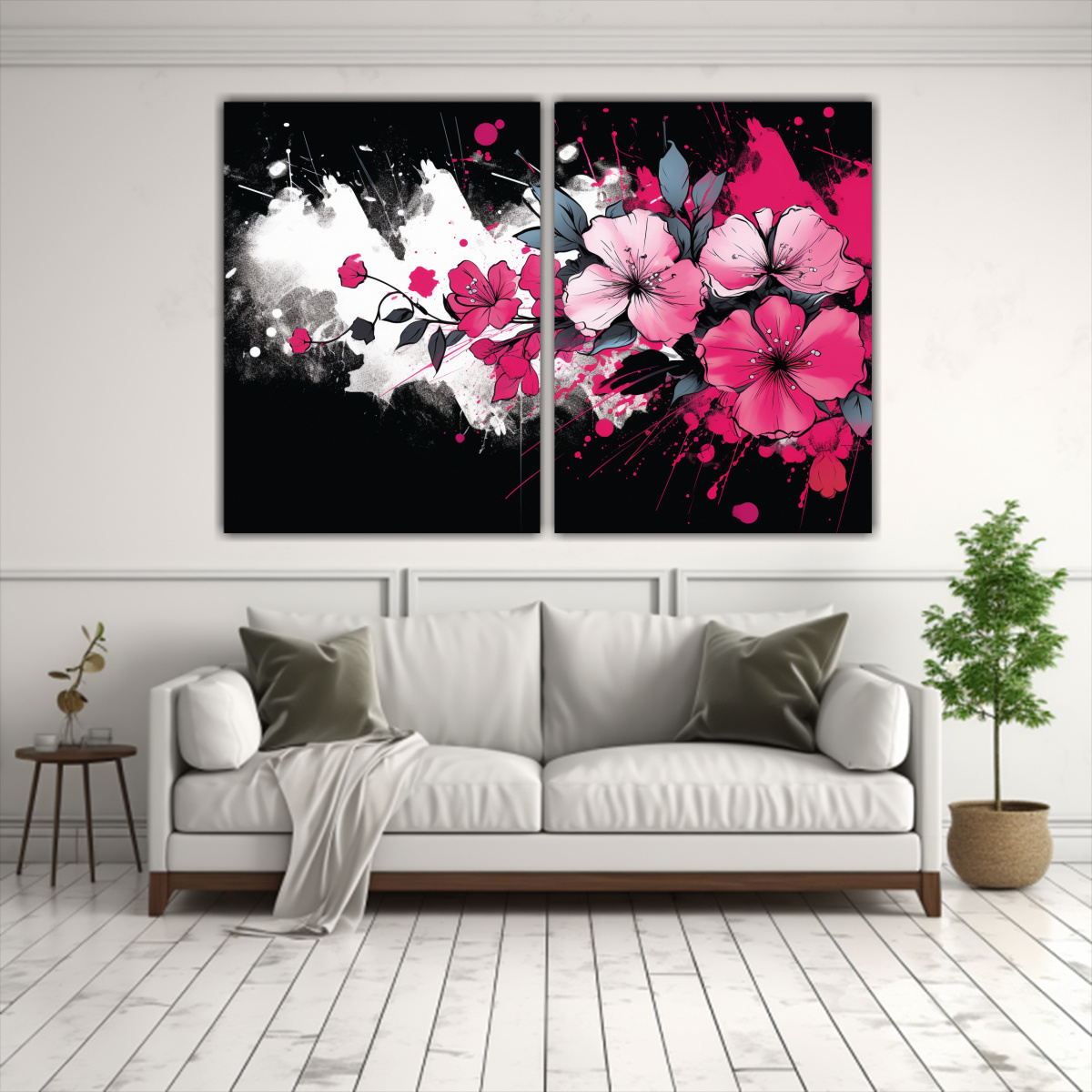 Lienzo Horizontal Expresividad Negro Y Rosa Estilo Neonoir Decorativo