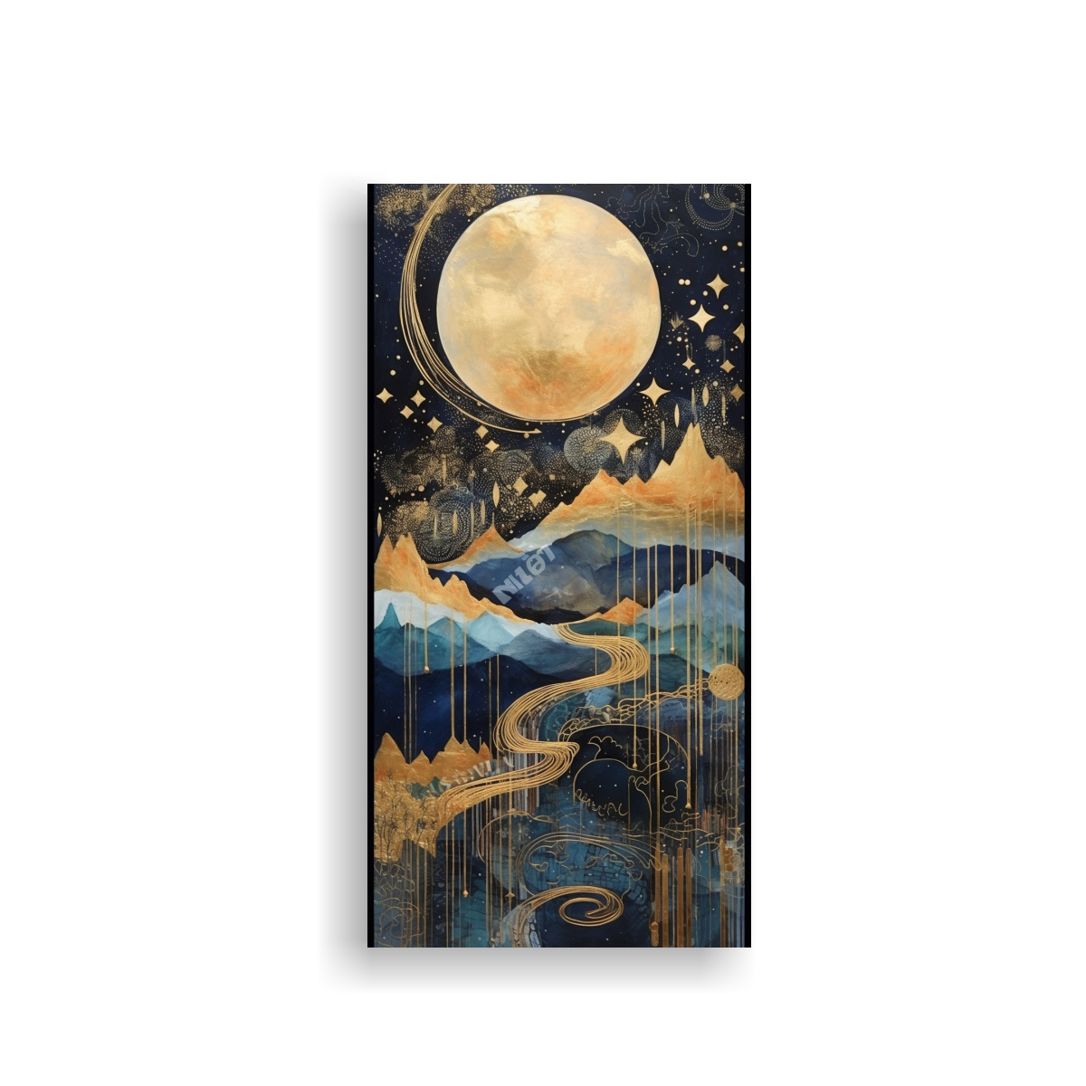 Lienzo Inspiración Obra Maestra: Pintura Con Luna Cerca De Las Montañas Y Estrellas