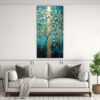 Este cuadro sería ideal para colocar en el salón de tu casa, justo encima del sofá Su diseño inspirador y los colores turquesa y oro agregarán un toque de calma y serenidad a tu espacio, creando un ambiente acogedor y agradable