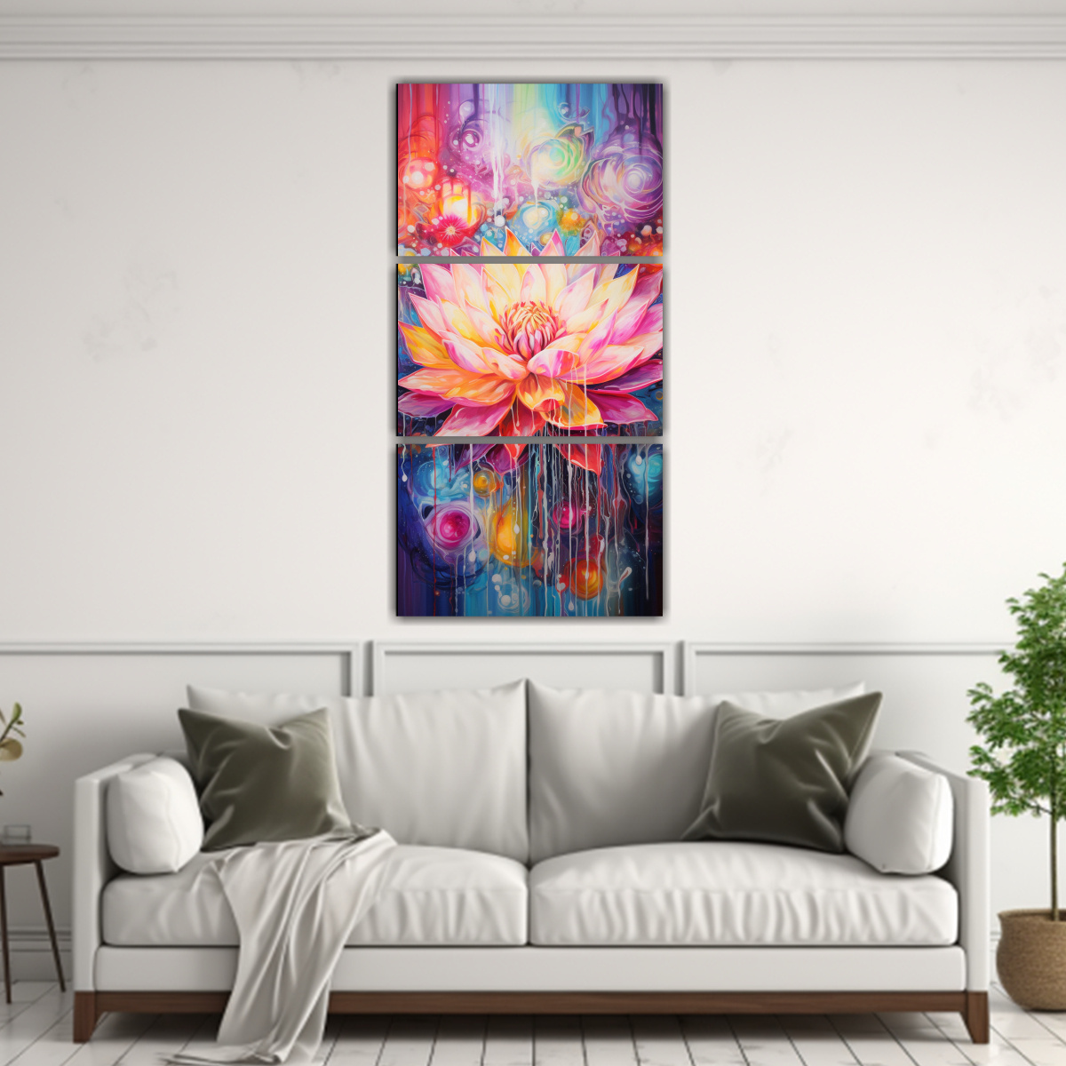 Este hermoso cuadro de loto en colores del arcoíris sería ideal para decorar tu sala de estar o tu dormitorio, aportando un toque de serenidad y armonía Combínalo con muebles en tonos neutros para resaltar su belleza y crear un ambiente de paz y tranquilidad