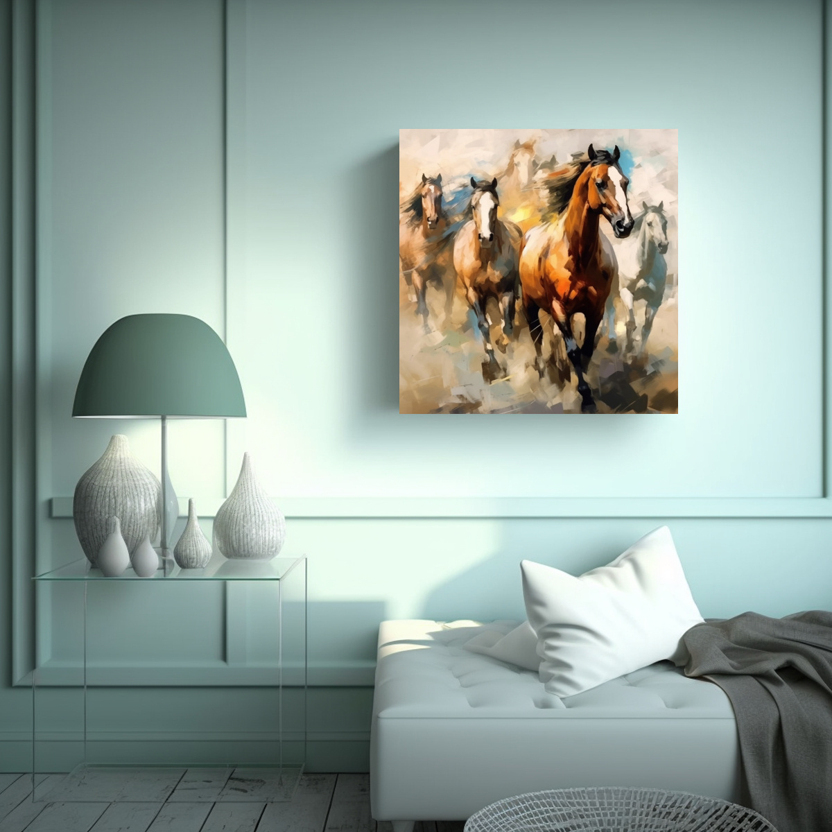 Lienzo Moderno Alegre Descarga Digital Cuadro Abstracto Caballos Estilo Oleo
