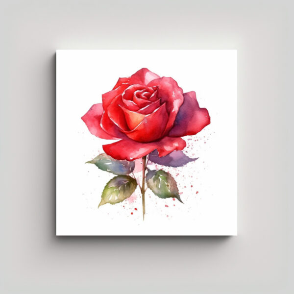 Decora tu hogar con el Cuadro Lienzo Moderno de Rosa Roja en Acuarela con Fondo Botánico de DecoCuadros Combina perfectamente en cualquier ambiente, brindando elegancia y sofisticación