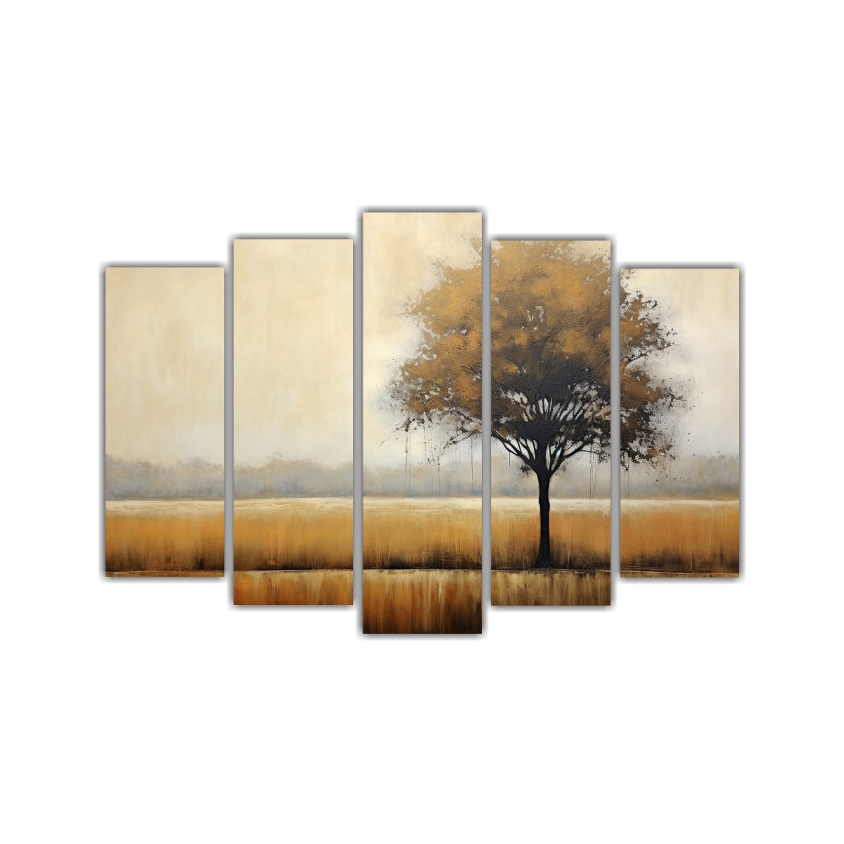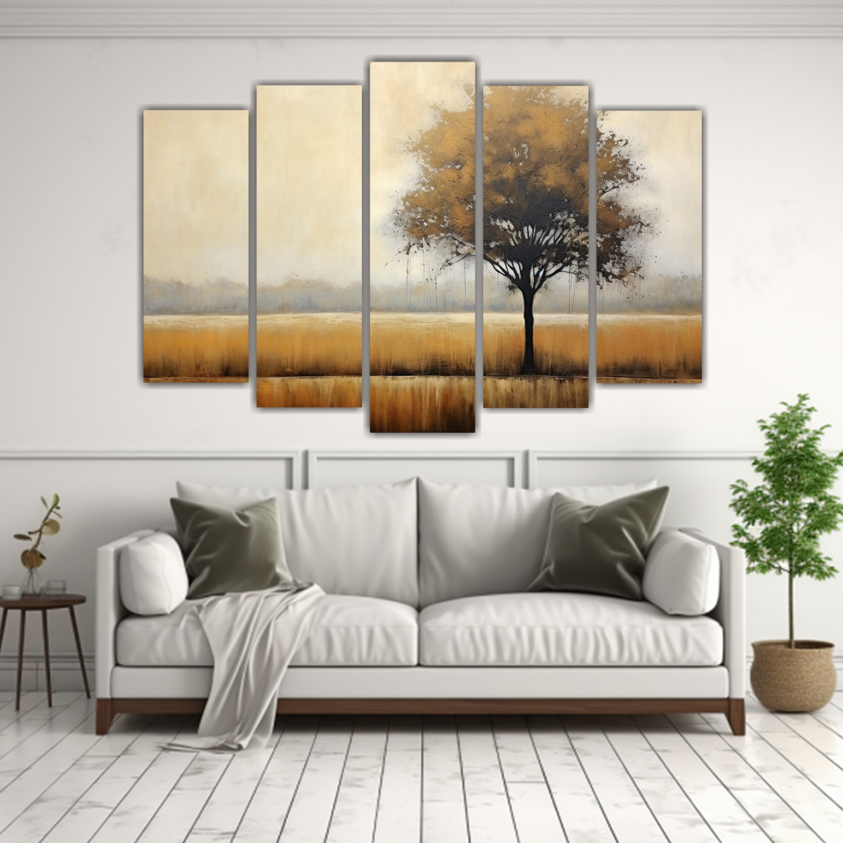 Este cuadro de árbol en campo estilo pintura se vería perfecto en tu sala de estar sobre un sofá beige, creando un ambiente acogedor y natural Combínalo con cojines en tonos tierra y una alfombra gris para resaltar su belleza