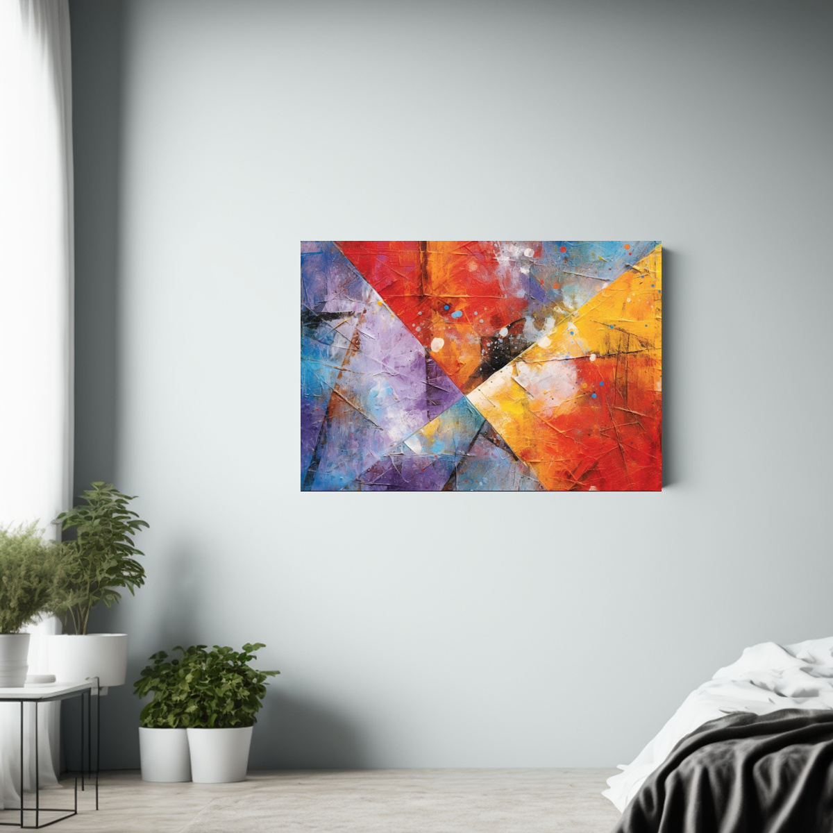 Este cuadro abstracto de tonos vibrantes se verá espectacular en una sala de estar moderna Combínalo con muebles en tonos neutros para resaltar su belleza y crear un ambiente sofisticado y elegante en tu hogar