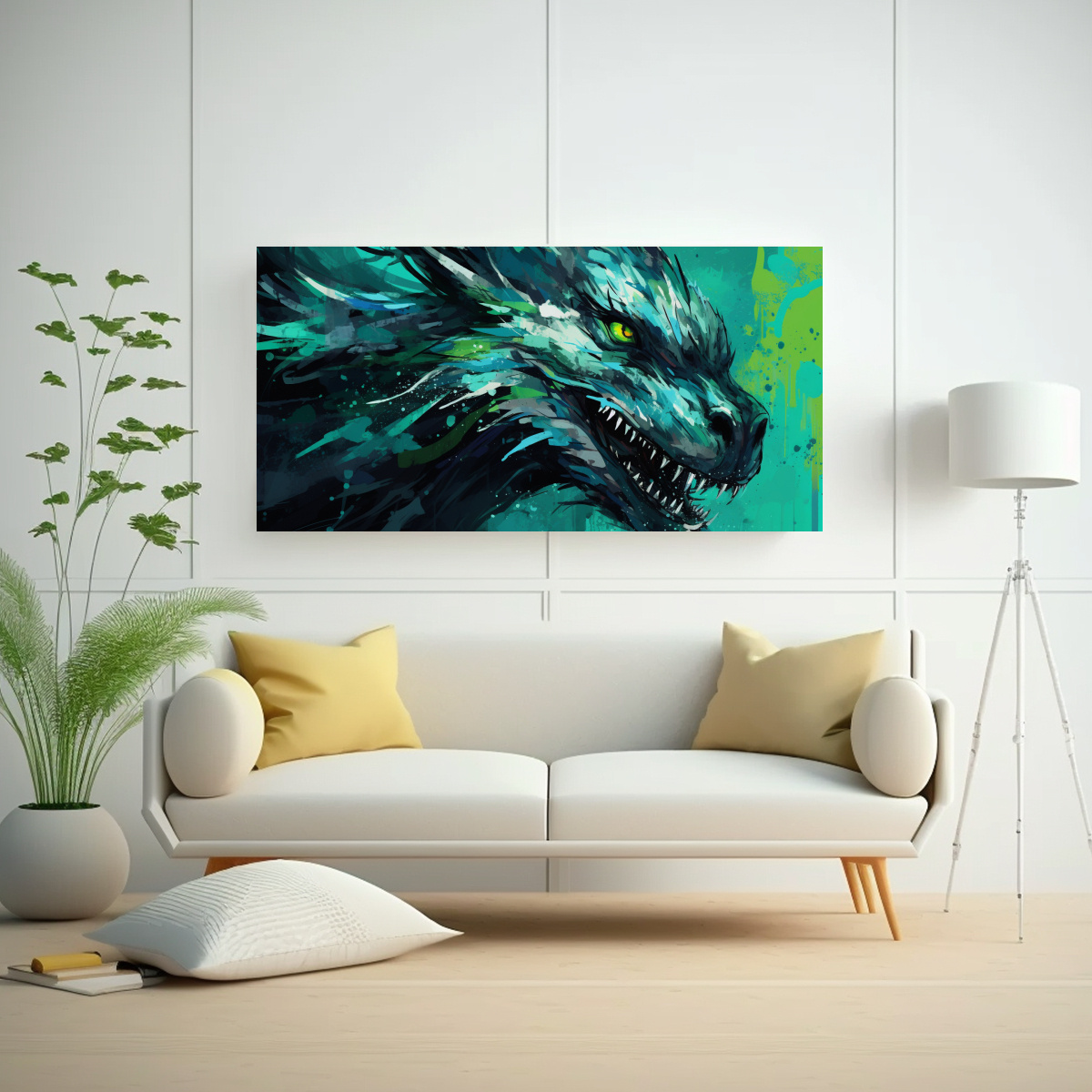 Transforma tu espacio con este cuadro único que combina el misticismo del dragón con colores vibrantes Ideal para salas de estar o habitaciones con estilo moderno o temático Diseño exclusivo de DecoCuadros