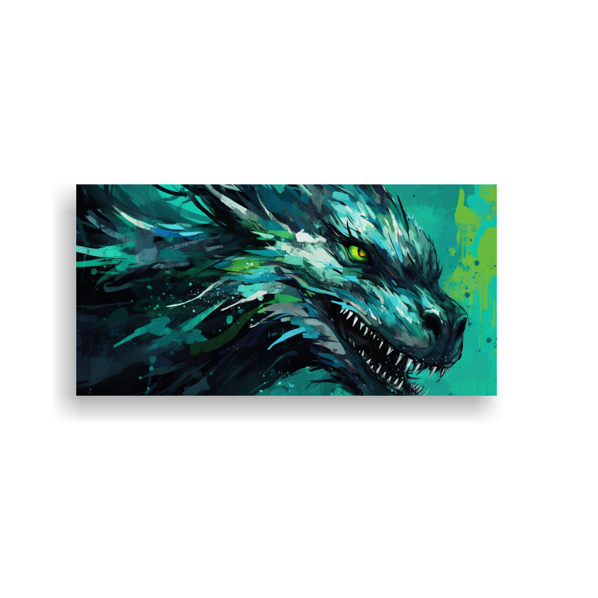 Lienzo Tela Colorido: Dragón Verde Y Turquesa, Atmosfera Neonoir