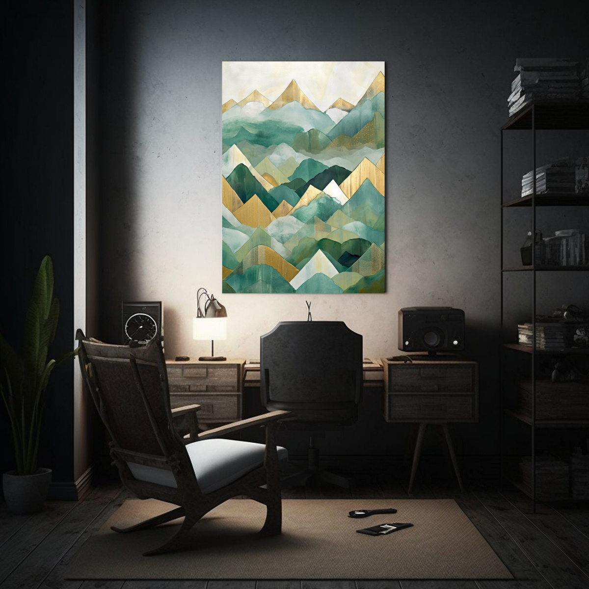 Este cuadro de belleza natural montañas abstractas es perfecto para decorar tu sala de estar o dormitorio Combínalo con muebles en tonos neutros como beige o blanco, y añade algunos elementos decorativos en tonos verdes para resaltar los colores del cuadro Crea un ambiente relajante y sofisticado en tu hogar con este diseño exclusivo de DecoCuadros