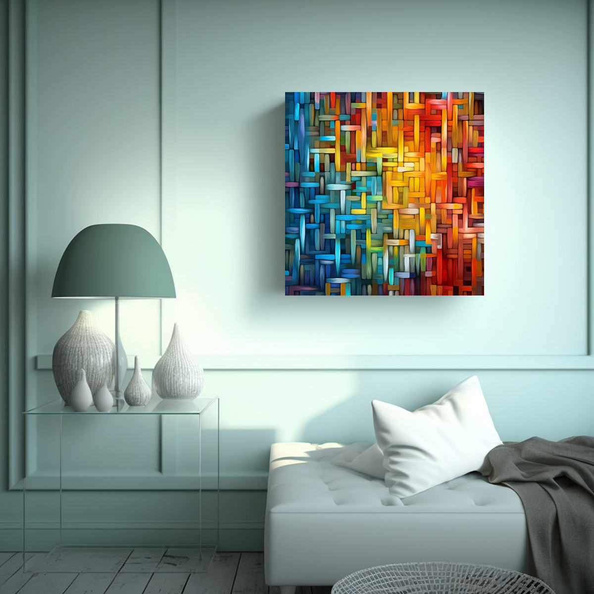 Este cuadro de lienzo tela relieve y entrelazado en el tiempo sería perfecto para decorar un salón moderno Combínalo con muebles en tonos neutros como el blanco, el gris o el beige para resaltar los colores vibrantes del cuadro Colócalo en una pared central para que sea el punto focal de la habitación