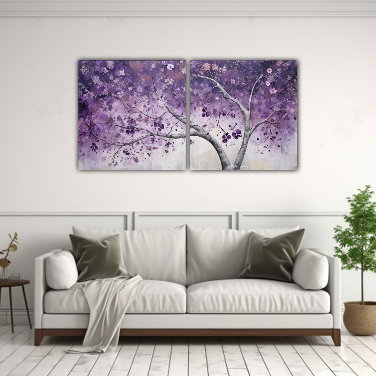 Lienzo Tema Clásico Del árbol En Morado Y Plata En Pinturas De Decoración