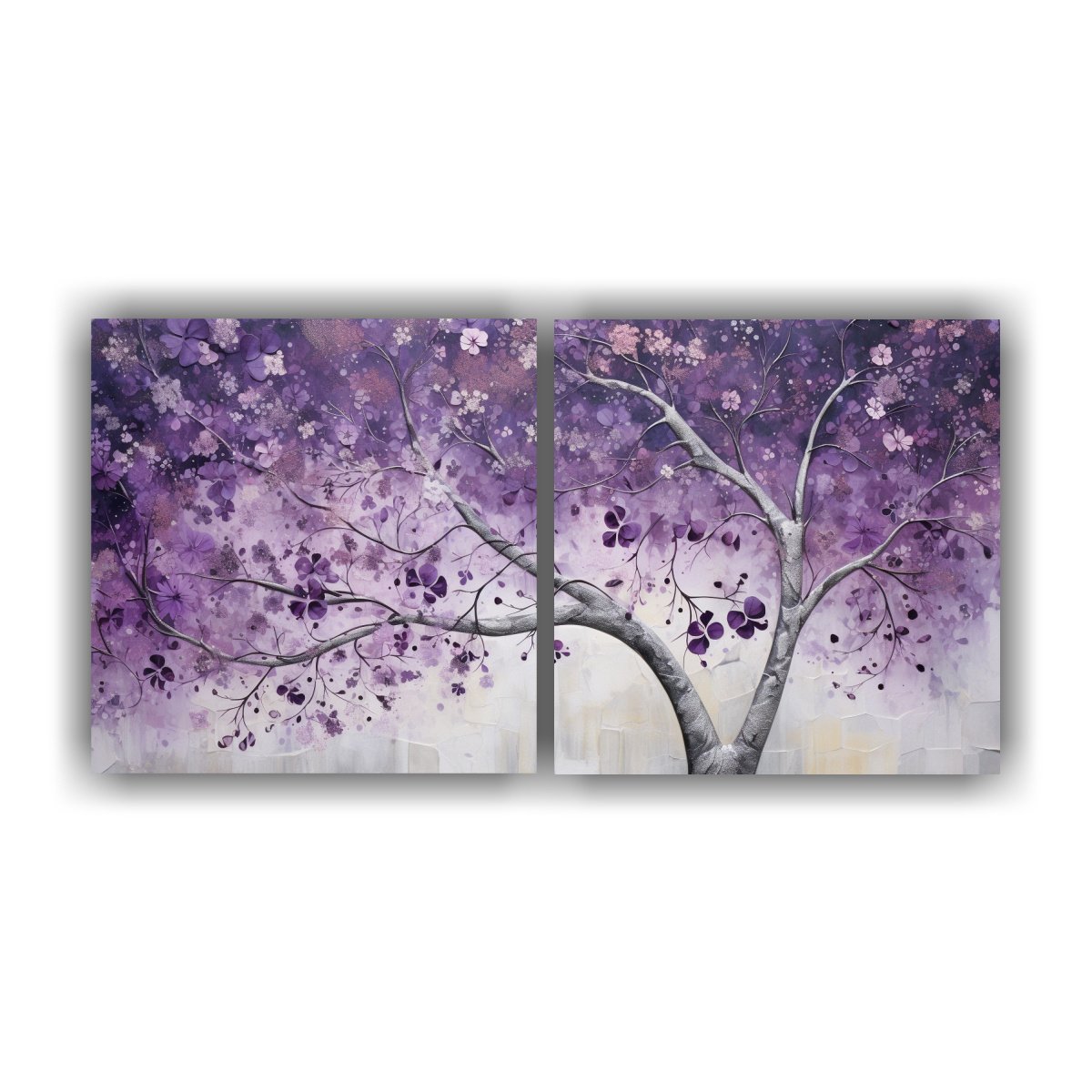 DecoCuadros ofrece el cuadro Lienzo Tema clásico del árbol en morado y plata Nuestros cuadros decorativos están impresos en tela de alta calidad con bastidores de madera, brindando la mejor calidad del mercado a precios económicos