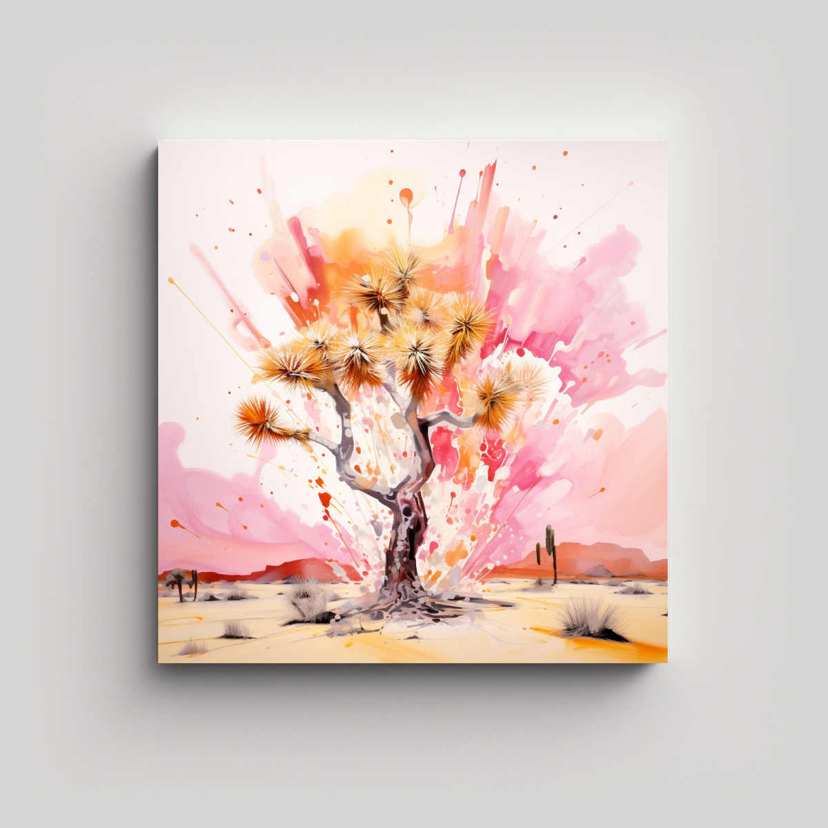 Lienzo Tema Simplicidad A Joshua Tree Oro Y Rosa Pintura Abstracta Acuática