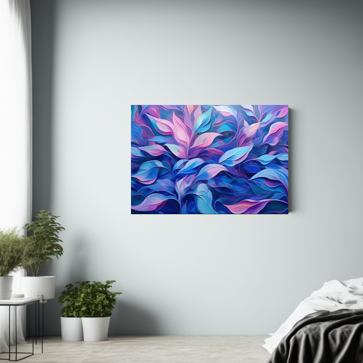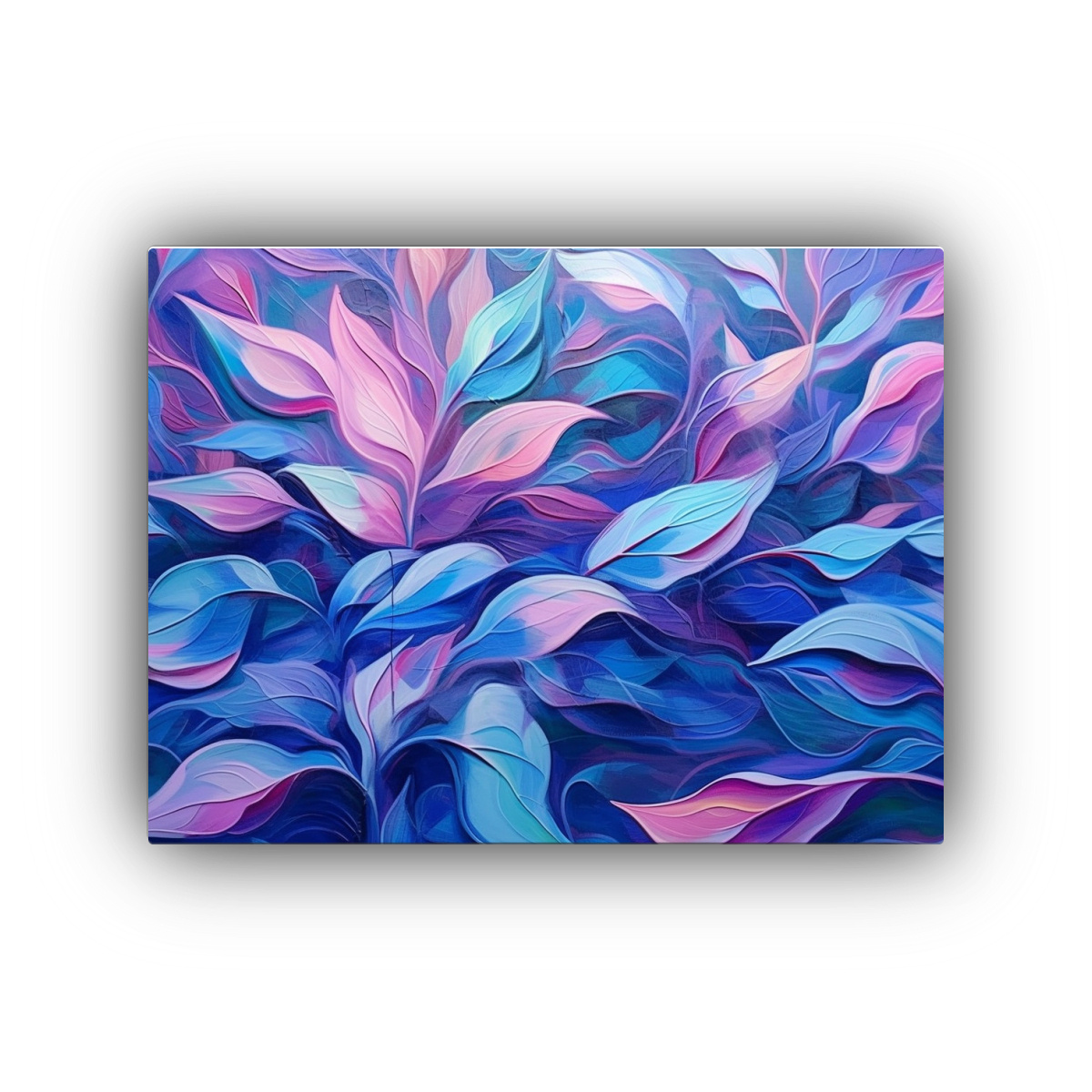Renueva tu hogar con el Lienzo Venta Intenso leaves blue and pink abstract photo canvas print Azul marino, gris, verde azulado y morado se fusionan en esta pieza única Envíos rápidos y gratuitos en Santiago, ¡aprovecha!